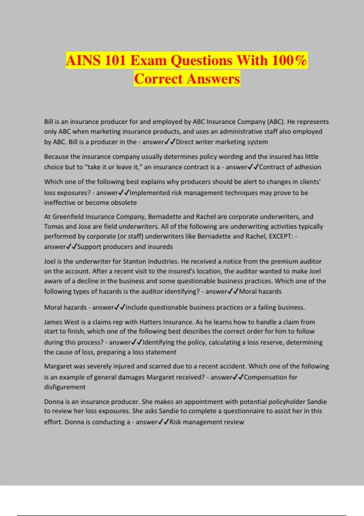 AINS 101 Exam Questions With 100% Correct Answers