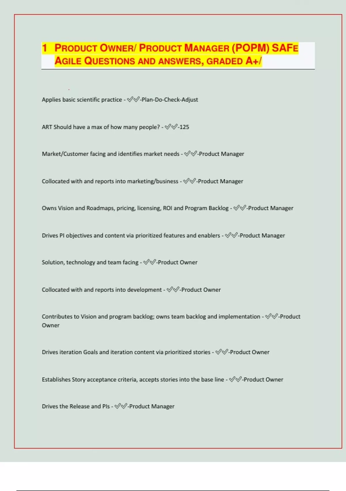 | LATEST EXAM UPDATES| 2024/25 |PRODUCT OWNER/ PRODUCT MANAGER (POPM) SAFE AGILE QUESTIONS AND ANSWERS, GRADED A+/