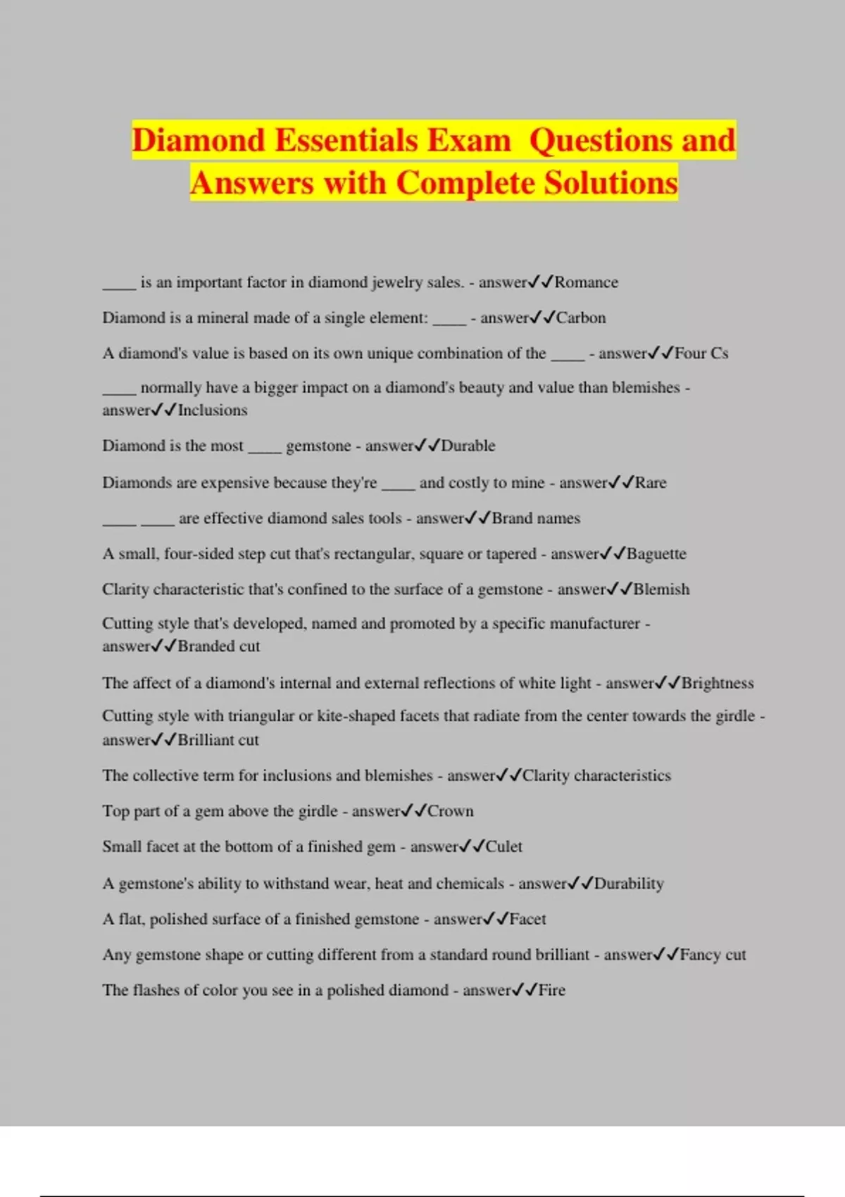 Diamond Essentials Exam Questions and Answers with Complete Solutions