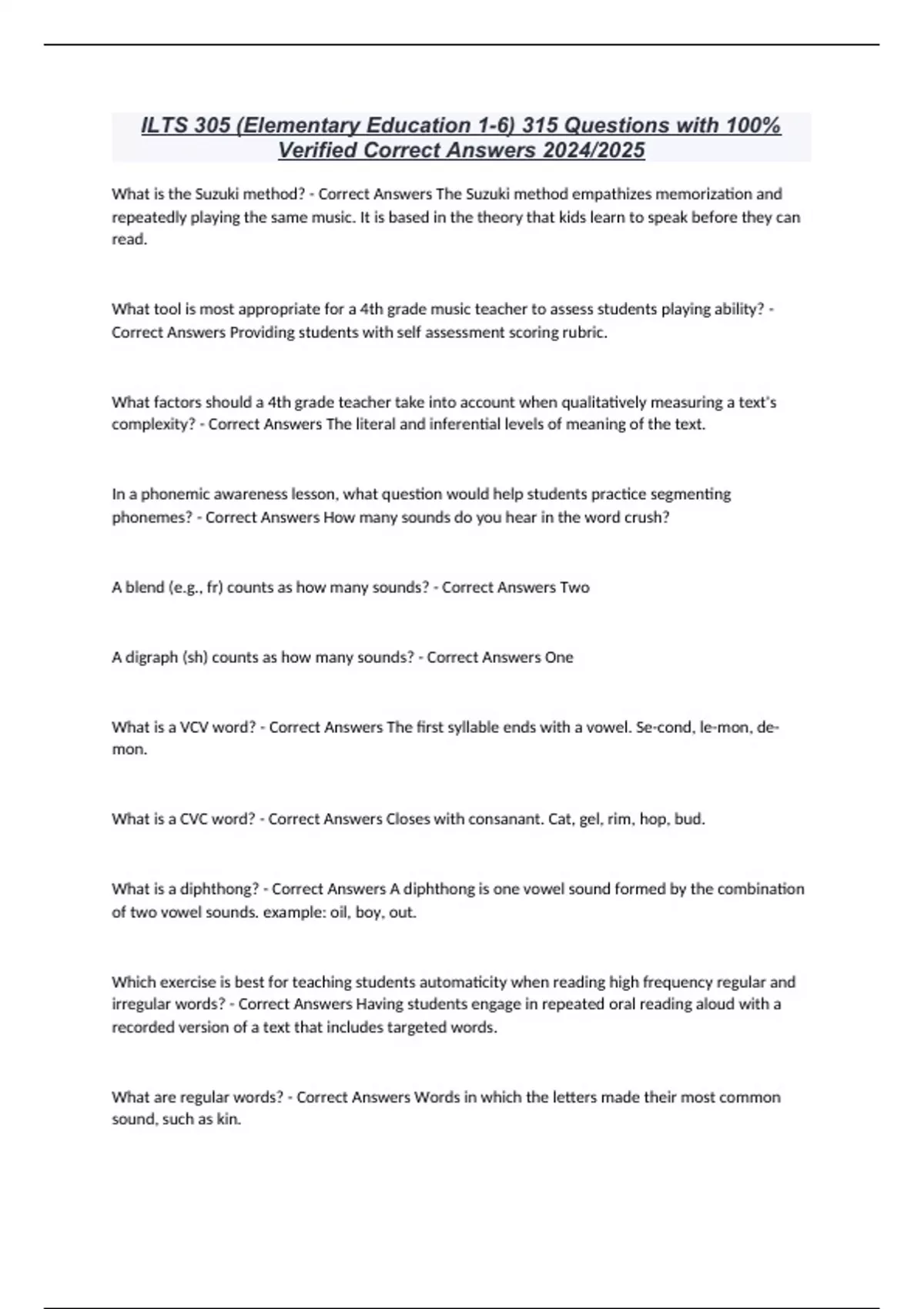 ILTS 305 (Elementary Education 1-6) 315 Questions with 100% Verified Correct Answers 2024/2025