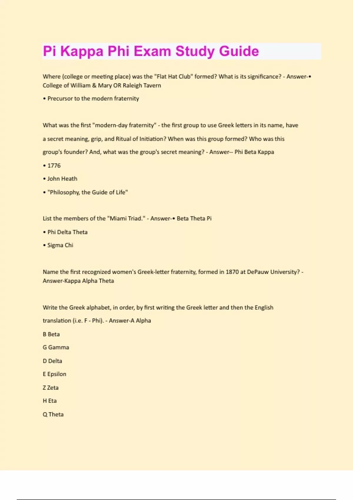 Pi Kappa Phi Final Exam Questions With All Correct Answers.