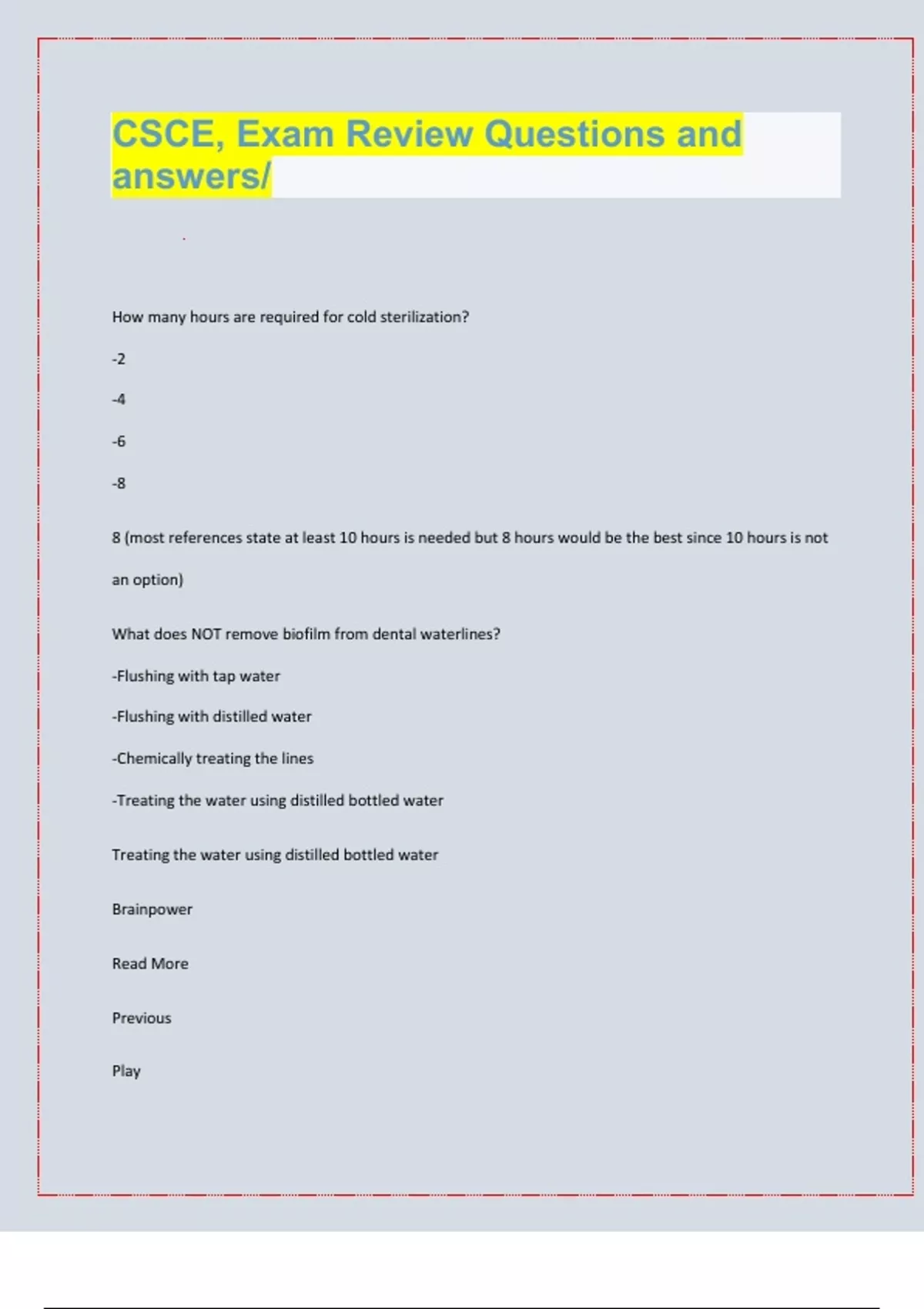 CSCE Practice Exam Questions and answers. VERIFIED/| LATEST EXAM UPDATES| 2024/25 |