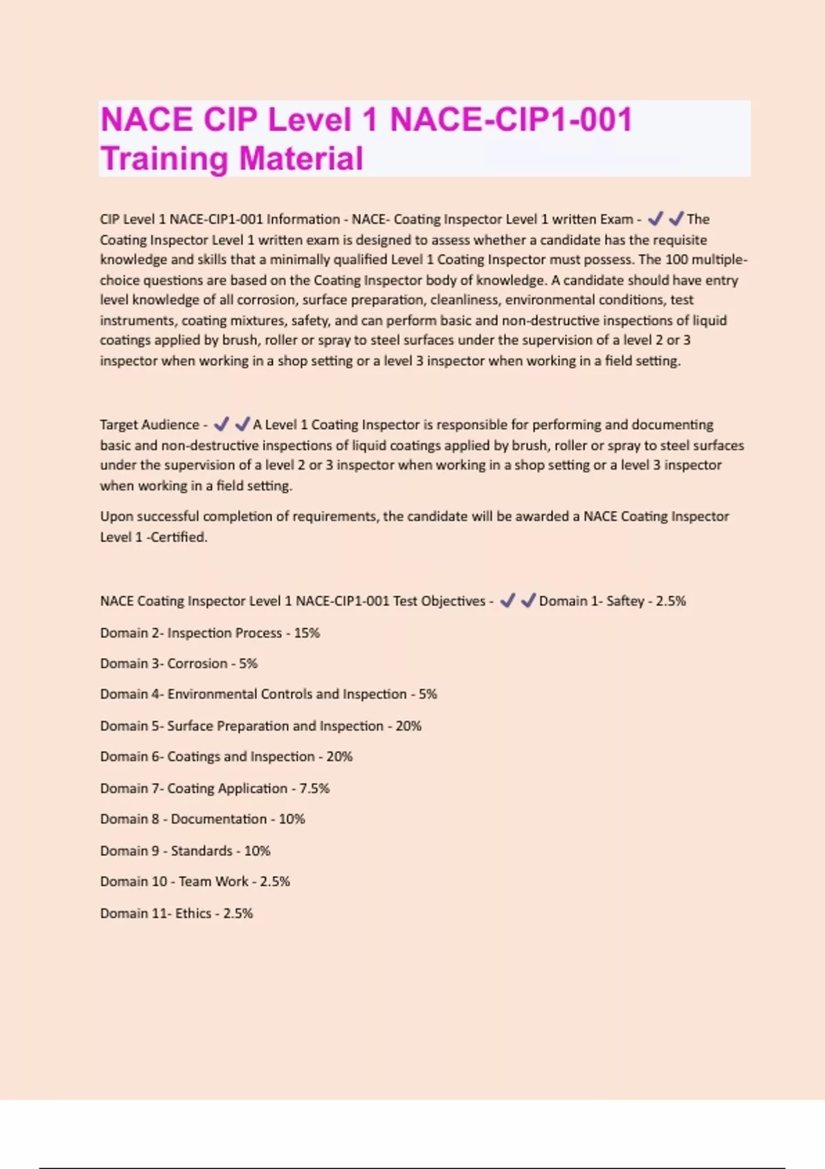 NACE CIP Level 1 NACE-CIP1-001 Training Material Exam Questions & Answers Already Graded A+