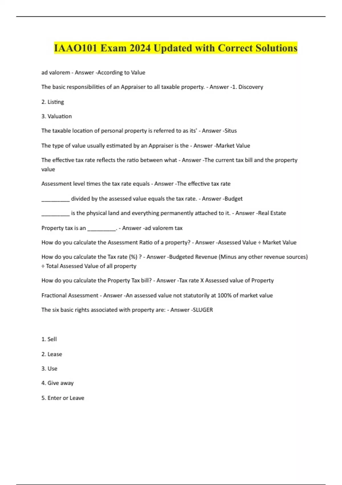 IAAO 101, 102, 400 Complete Bundled Exams and Verified Solutions 2024 | 2025