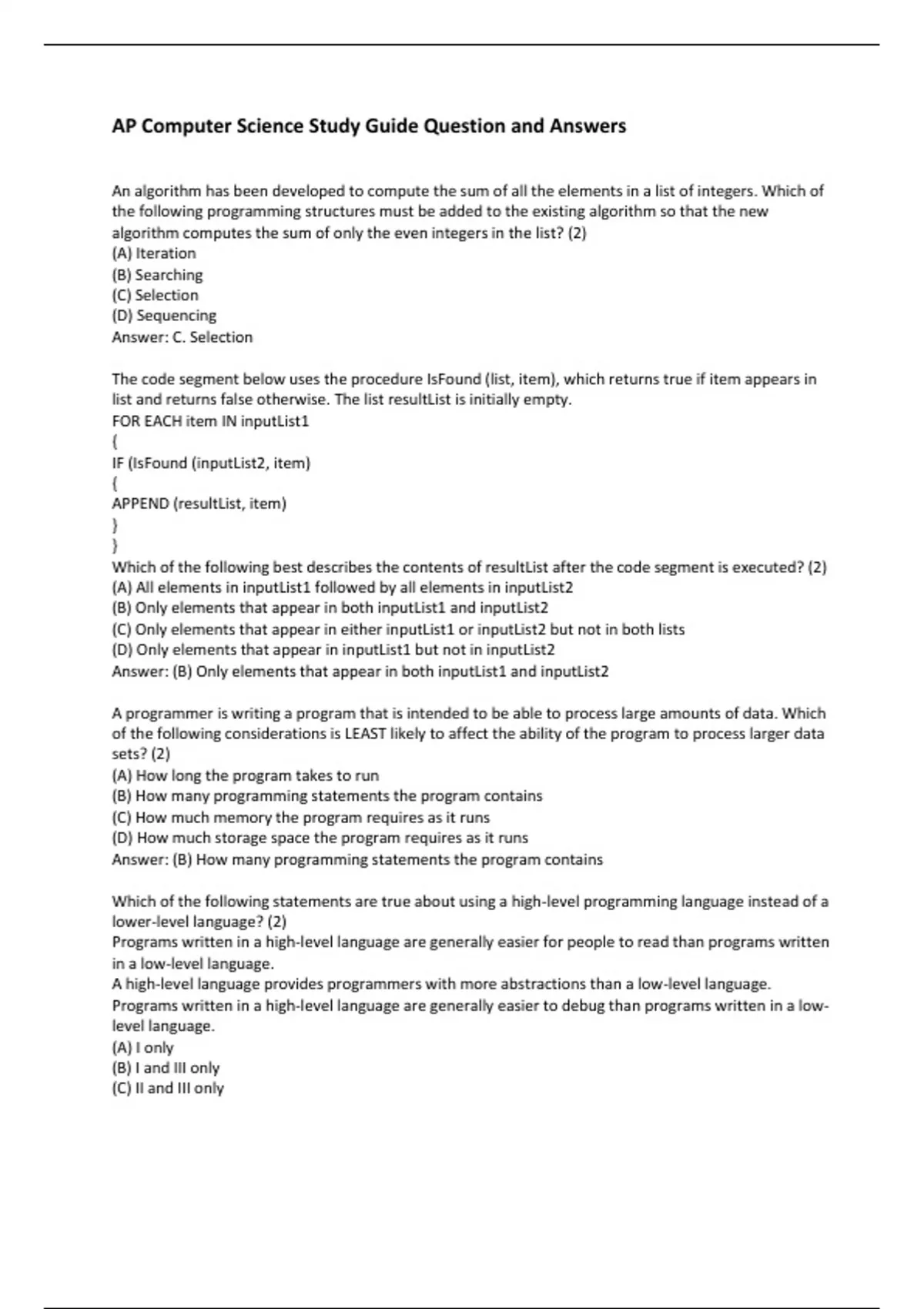 In this documents you’ll find, introduction to Computer Science Course, Computer Science Exam Test Questions and Answers, Computer Science Question and answers, Computer Science pdf notes, Computer Science secrete study guide, Computer Science revision Exam test, Computer Science revision test Computer Science Secrete Study Guide Exam Revision Test