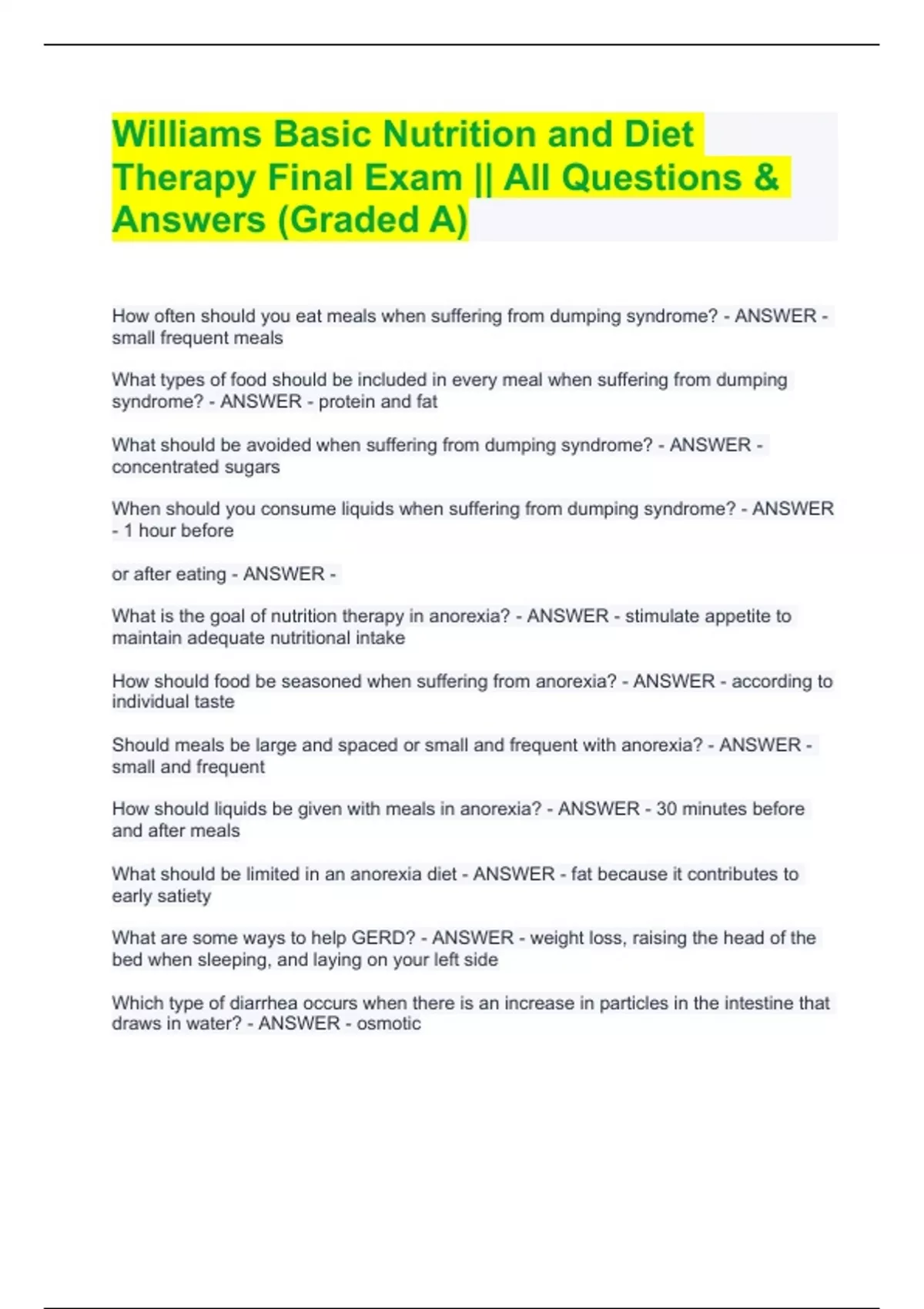 William’s Basic Nutrition and Diet Therapy 2024 Tests BUNDLE (PACKAGE DEAL) || Complete Questions & Answers (Graded A )William’s Basic Nutrition and Diet Therapy 2024 Tests BUNDLE (PACKAGE DEAL) || Complete Questions & Answers (Graded A )William’s Basic Nutrition and Diet Therapy 2024 Tests BUNDLE (PACKAGE DEAL) || Complete Questions & Answers (Gra