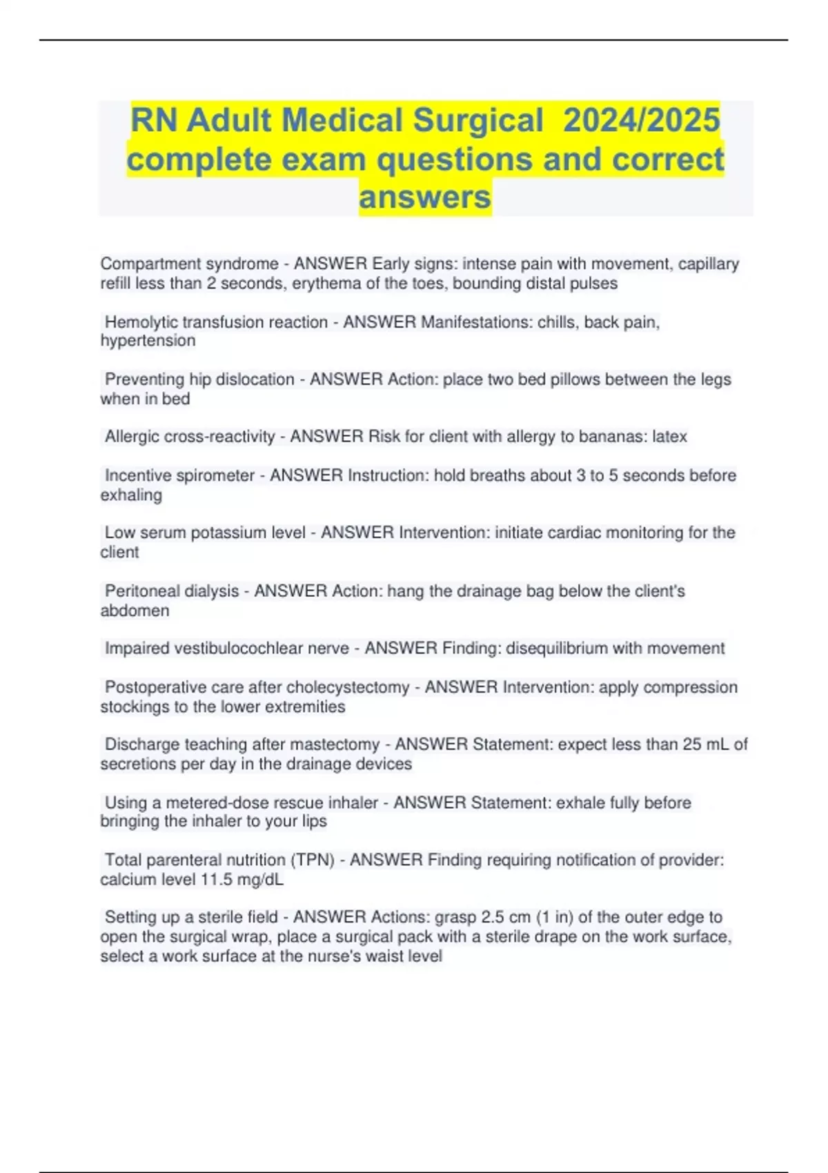 bundle for RN Adult Medical Surgical Online Practice 2024/2025 updated latest exam