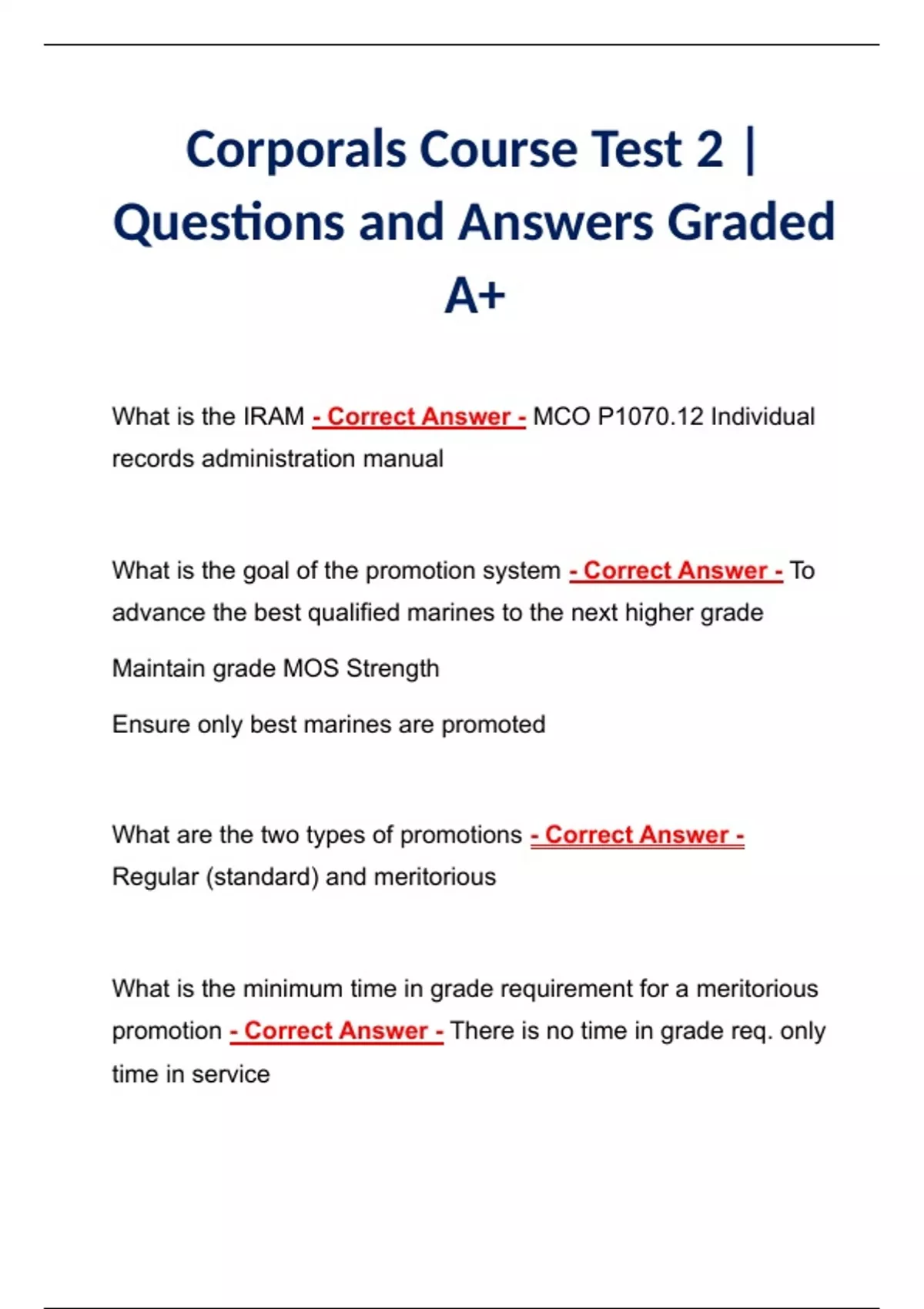 Corporal's Course Test | Questions and Answers Graded and Rated A+