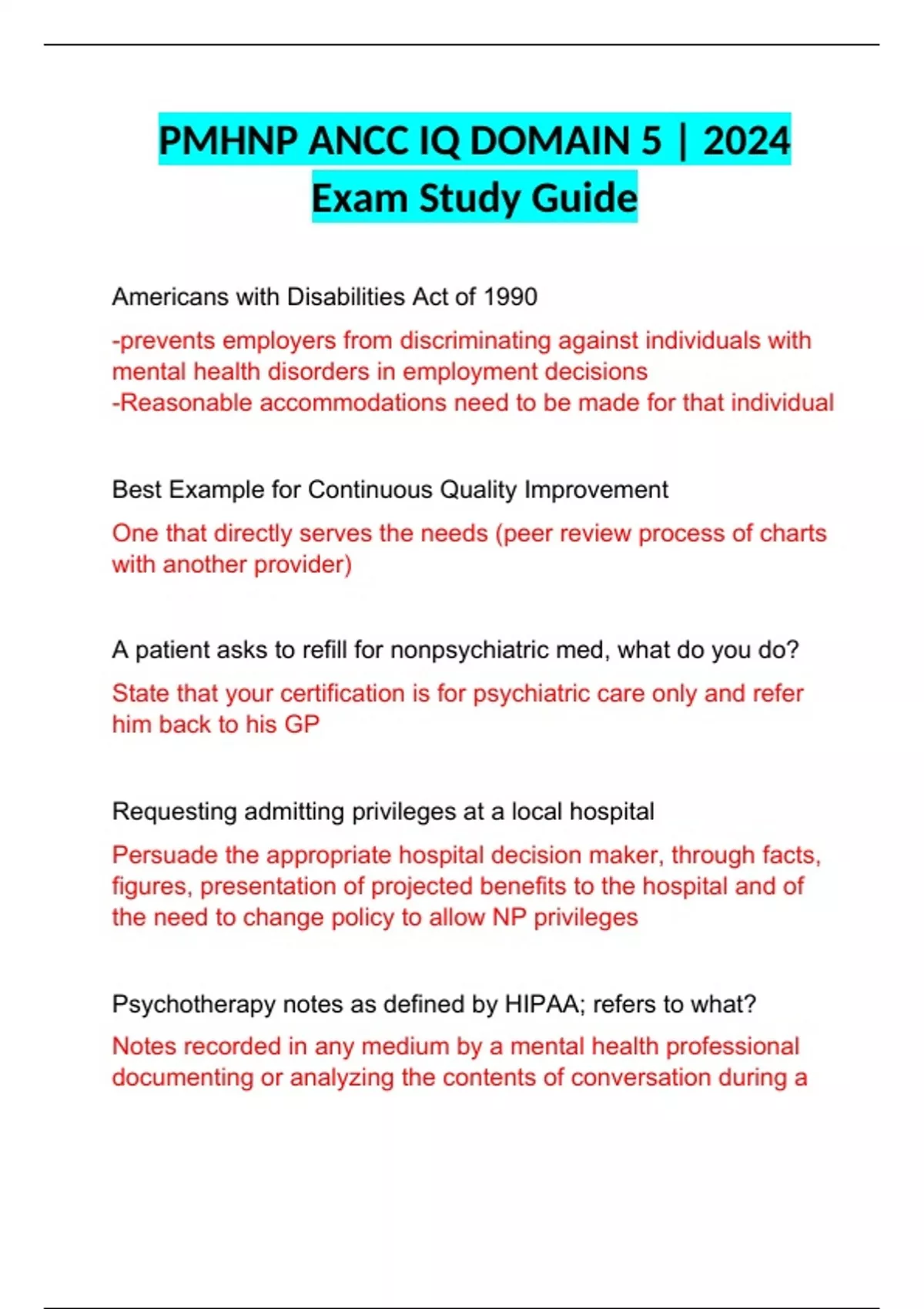 PMHNP ANCC IQ DOMAIN 2 2024 Exam Study Guide | Download to Score A