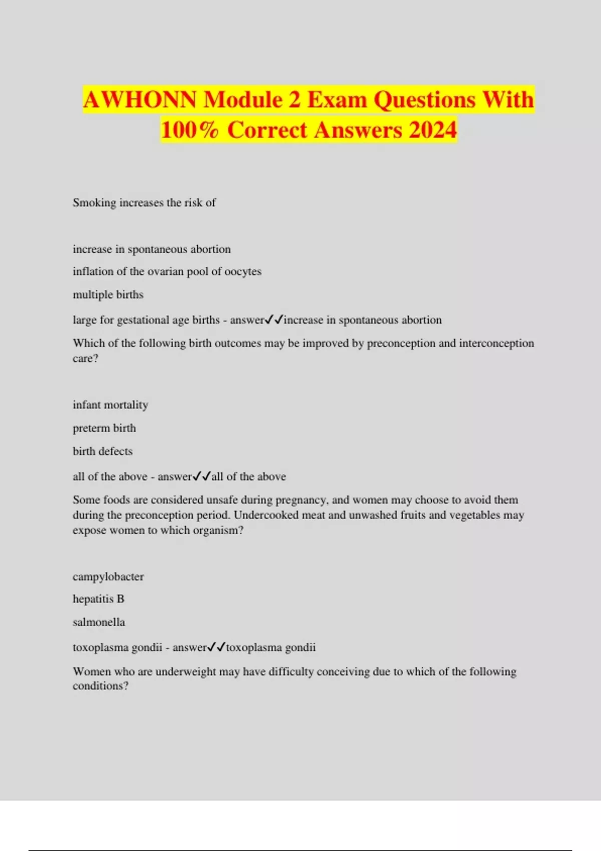 AWHONN Module 2 Exam Questions With 100% Correct Answers 2024