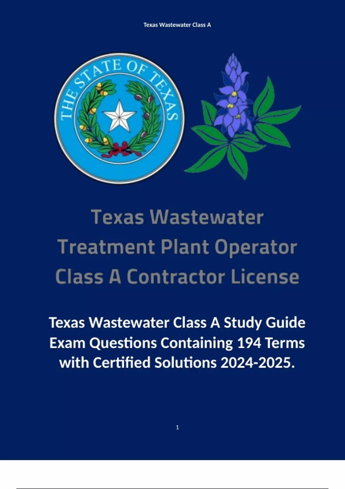 1 Exam (elaborations) Texas Class D Water Operator License Exam TCEQ Containing 180 Questions with Certified Solutions . 2 Exam (elaborations) Texas Wastewater Basic Operations Study Guide Questions and Answers/ A+ Score Solutions . 3 Exam (elaborations) Texas Wastewater Class A (Test 3) Containing 143 Questions with Definitive