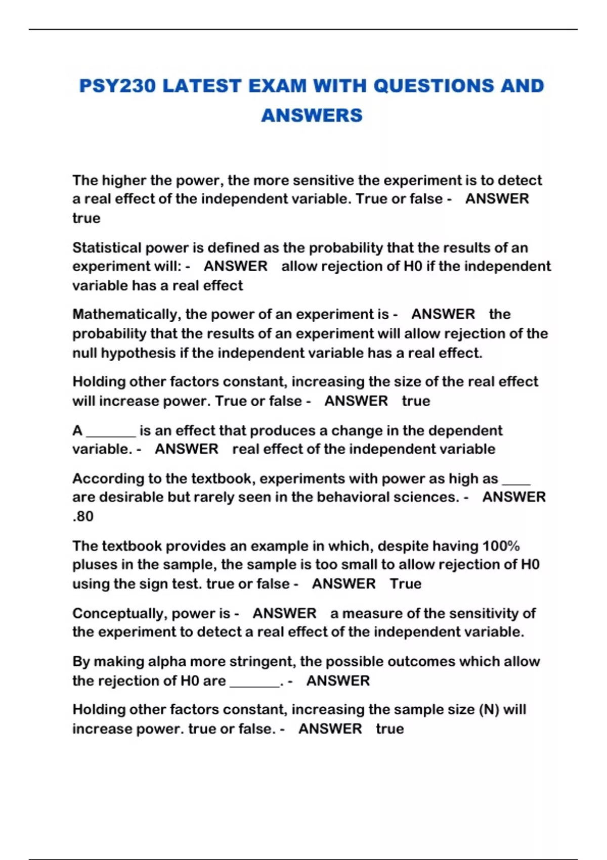 PSY230 LATEST EXAM WITH QUESTIONS AND ANSWERS