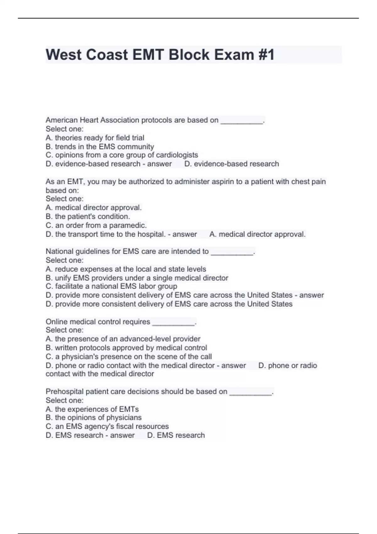 Exam (elaborations) West Coast EMT Block 3 Questions and Answers 100% Accurate Exam (elaborations) West Coast Emt Quiz 1 Questions and Answers 100% Accurate Exam (elaborations) West Coast EMT Acronyms Questions and ASnswers 2024 Exam (elaborations) Block 4 West Coast EMT Questions with correct Answers Exam (elaborations) West Coast EMT A&P