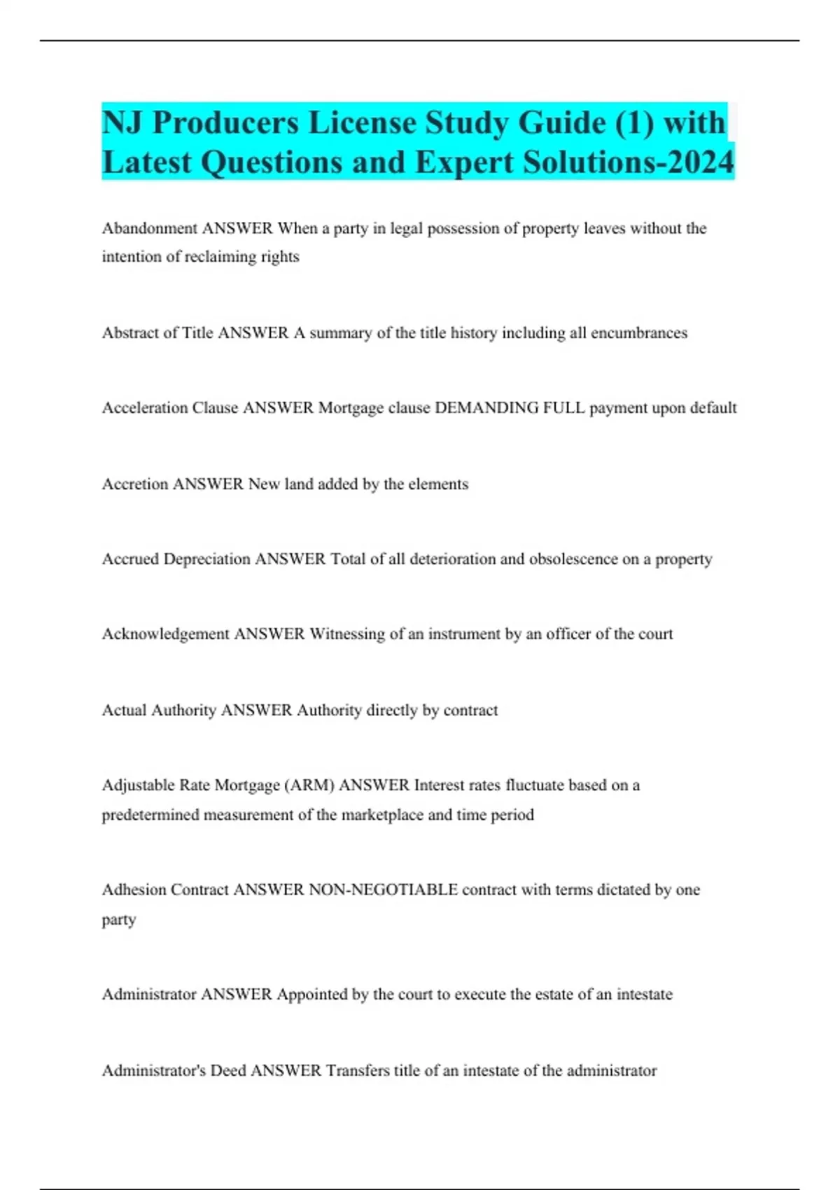 NJ Title Producer Terms & Concepts with Written Questions and Verified Answers Title Producer Exam NJ Terms with written Questions and Verified Answers NJ Producers License Study Guide (1) with Latest Questions and Expert Solutions-2024