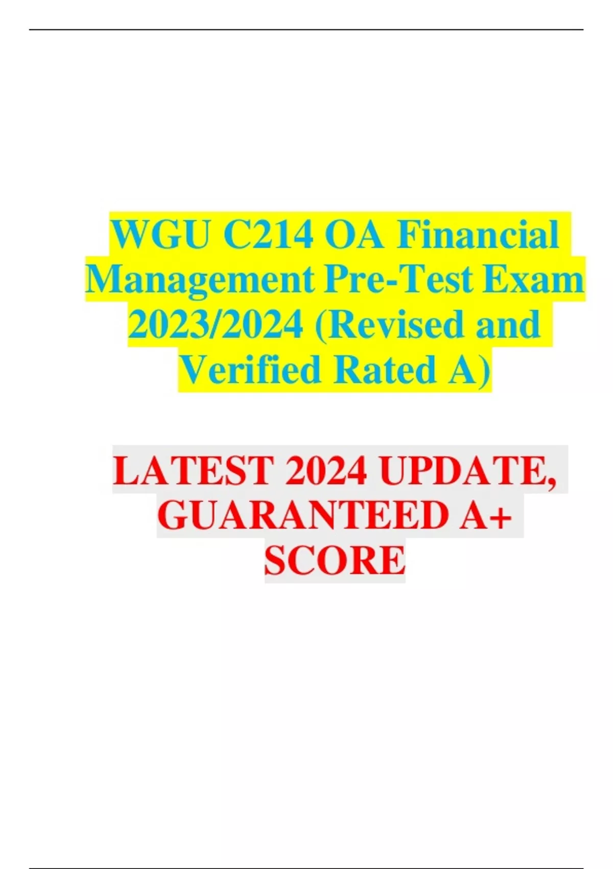 PACKAGE DEAL FOR WGU C175/D426 DATA MANAGEMENT FOUNDATIONS OA EXAM ACTUAL EXAM 2, WGU C214 OA Financial Management Pre-Test Exam, WGU C720 OA 2023/2024 REAL EXAM 200 QUESTIONS, WGU C182 OBJECTIVE ASSESSMENT EXAM 150 QUESTIONS, & WGU C468 INFORMATION MANAGEMENT AND APPLICATION OF TECHNOLOGY FINAL EXAM 2024/2025.