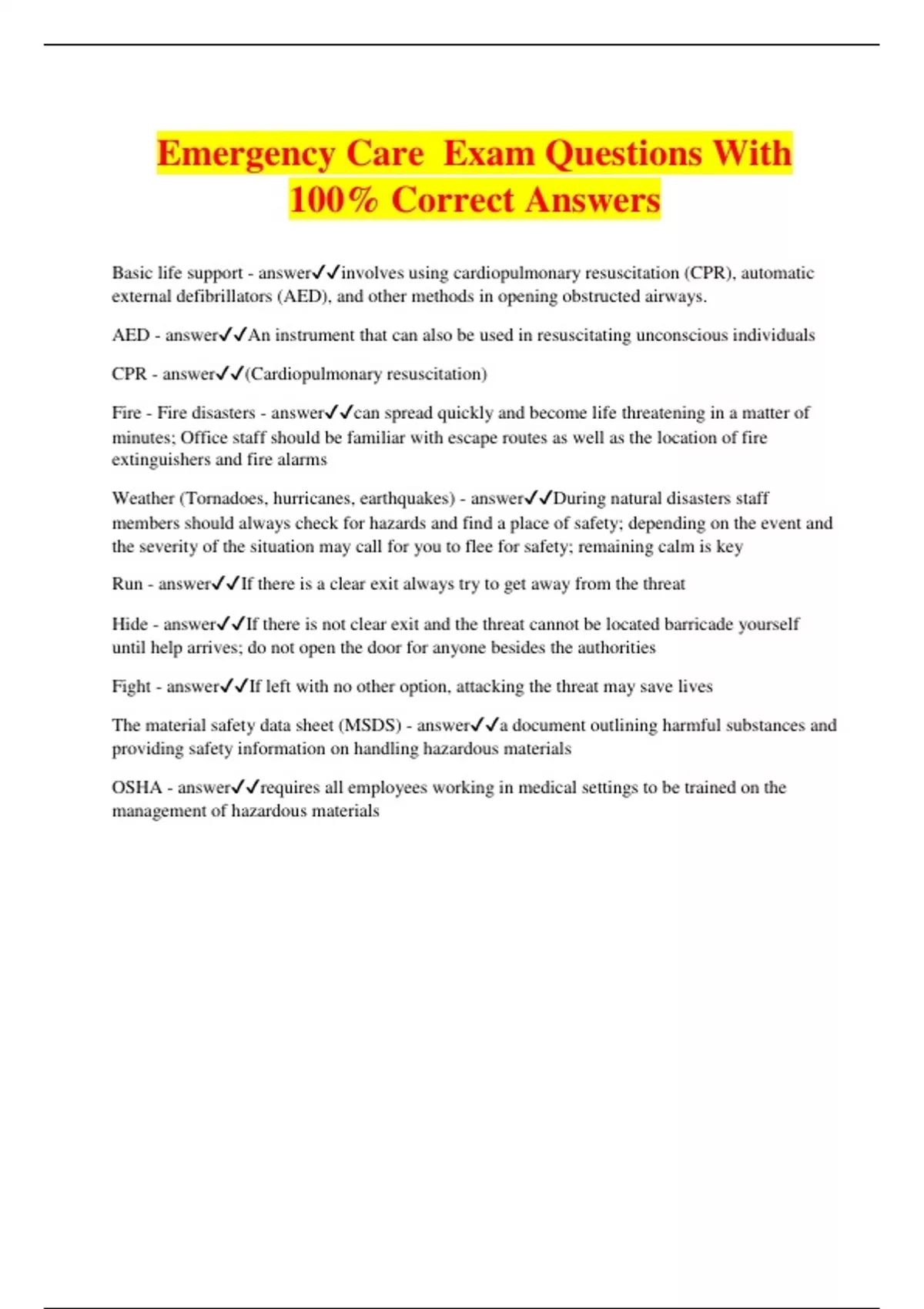 Basic Emergency Care Exam Questions And Answers 2024/2025