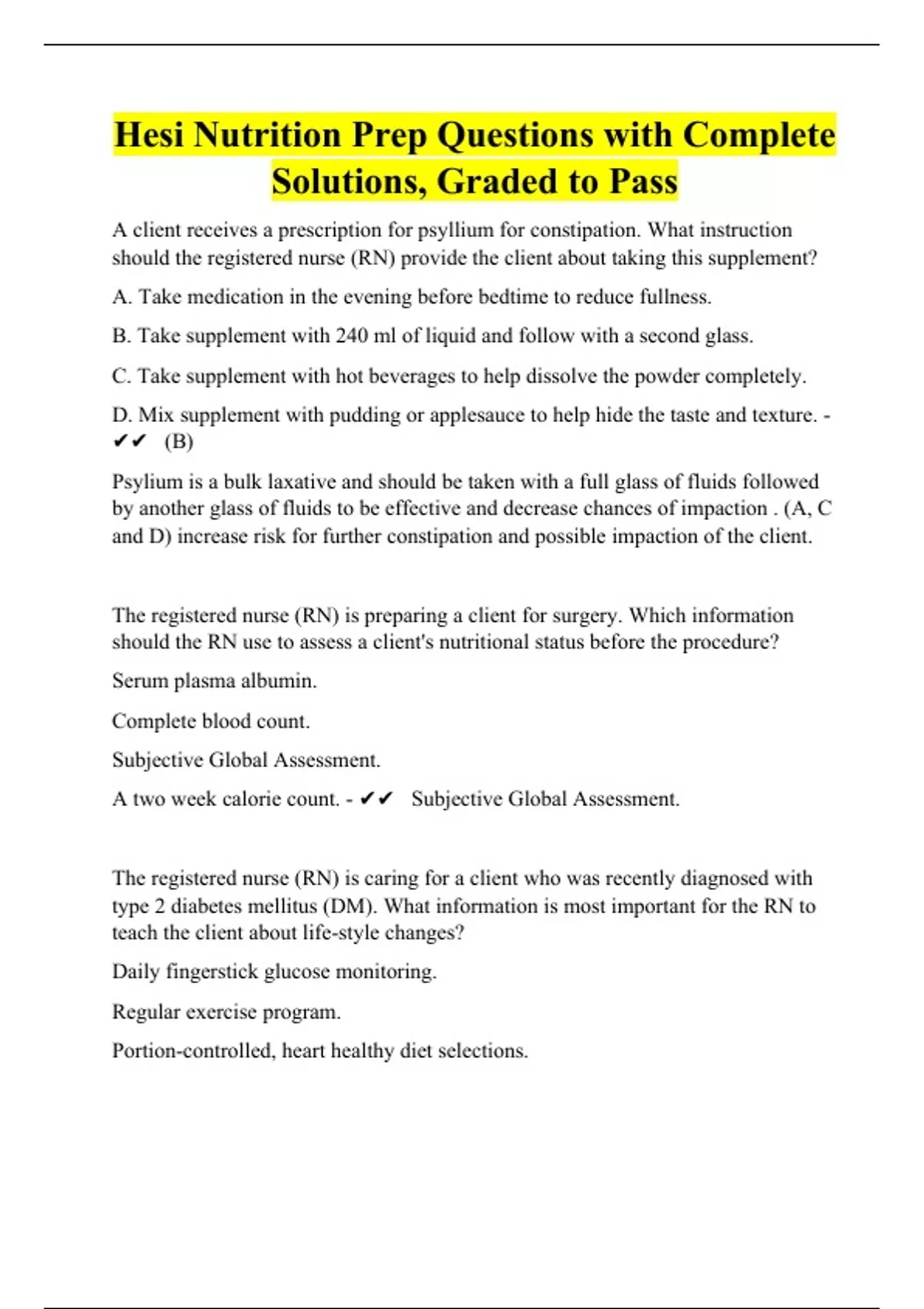 HESI Nutrition Practice Exam Bundle