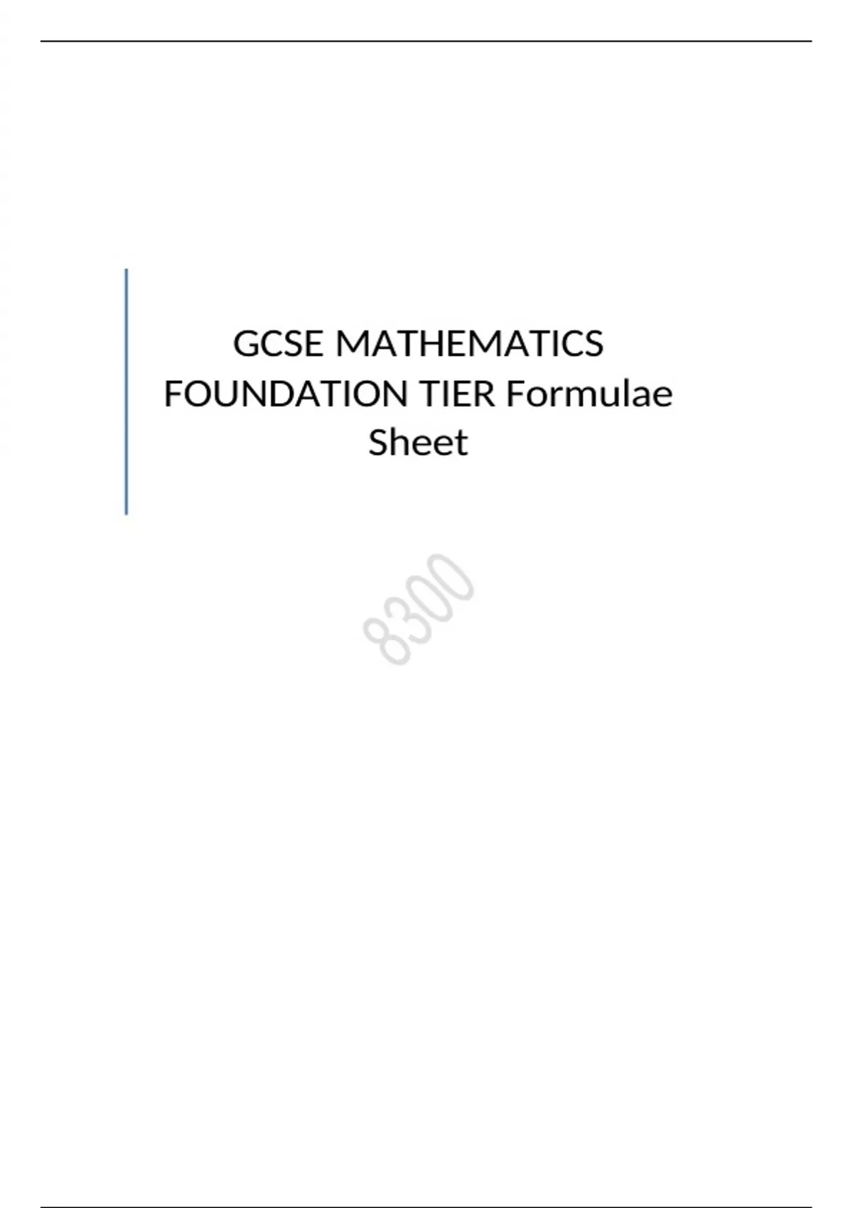 AQA GCSE MATHEMATICS FOUNDATION TIER Formulae Sheet INSERTS FOR JUNE 2023