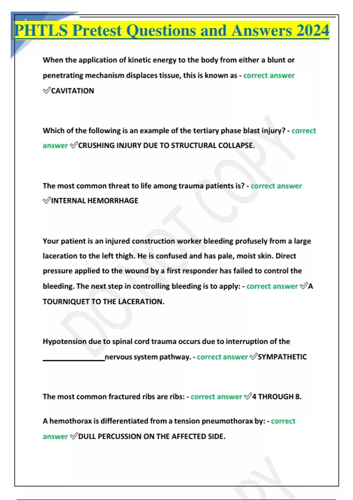 PHTLS Pre & Post Test Questions and Answers 2024.