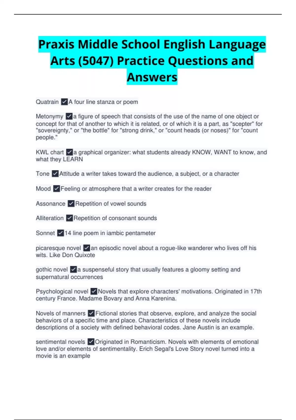 Praxis Middle School English Language Arts Q&A Mastery Bundle