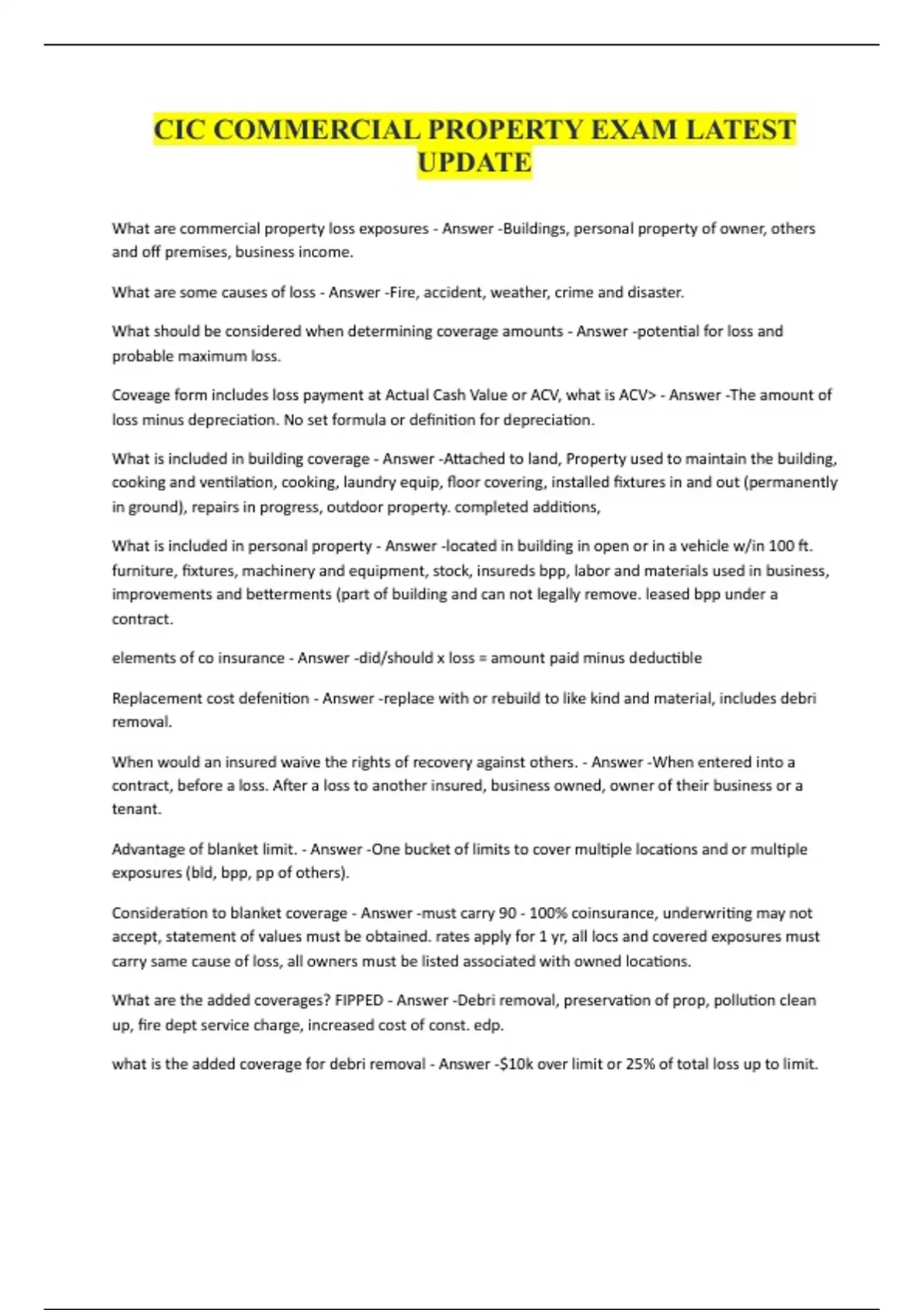 CIC Agency Property BUNDLED Exams and Verified Solutions 2024 | 2025 Update. Commercial multi-line, management, tests, exam prep