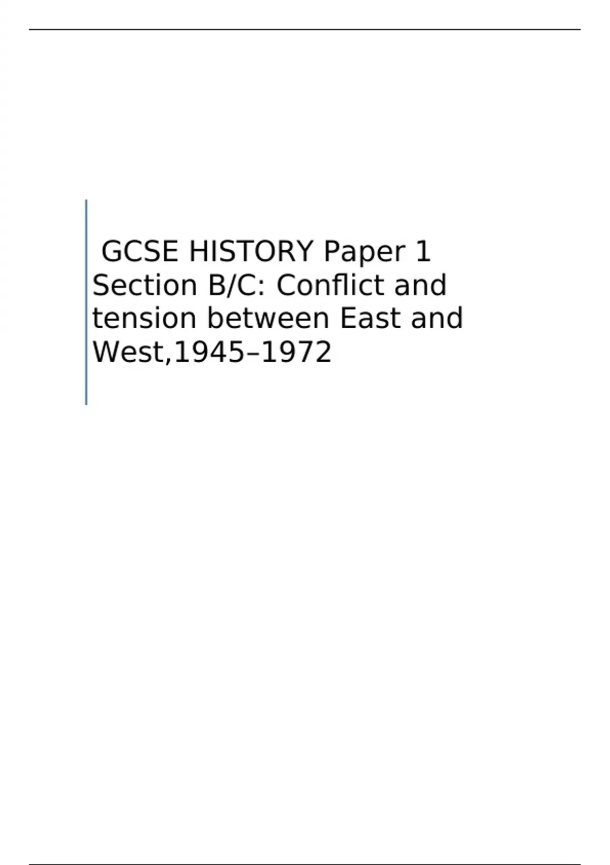 AQA GCSE HISTORY Paper 1 Section B/C: Conflict and tension between East and West, 1945–1972 QUESTION PAPER AND MARK SCHEME FOR JUNE /1B/C