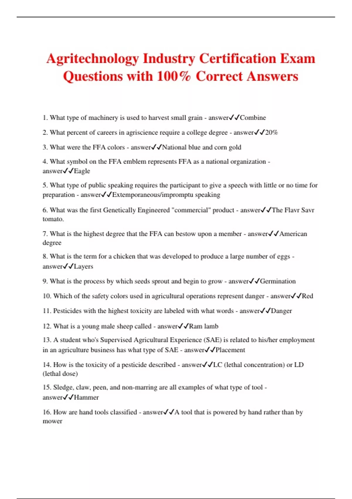 Agritechnology Industry Certification Exam Questions with 100% Correct Answers