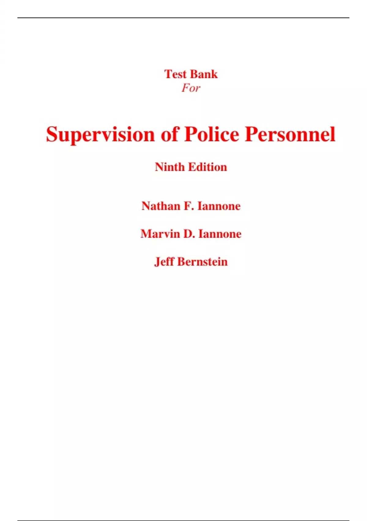 Instructor Manual With Test Bank for Supervision of Police Personnel 9th Edition By Nathan Iannone, Marvin Iannone, Jeff Bernstein (All Chapters, 100% Original Verified, A Grade)
