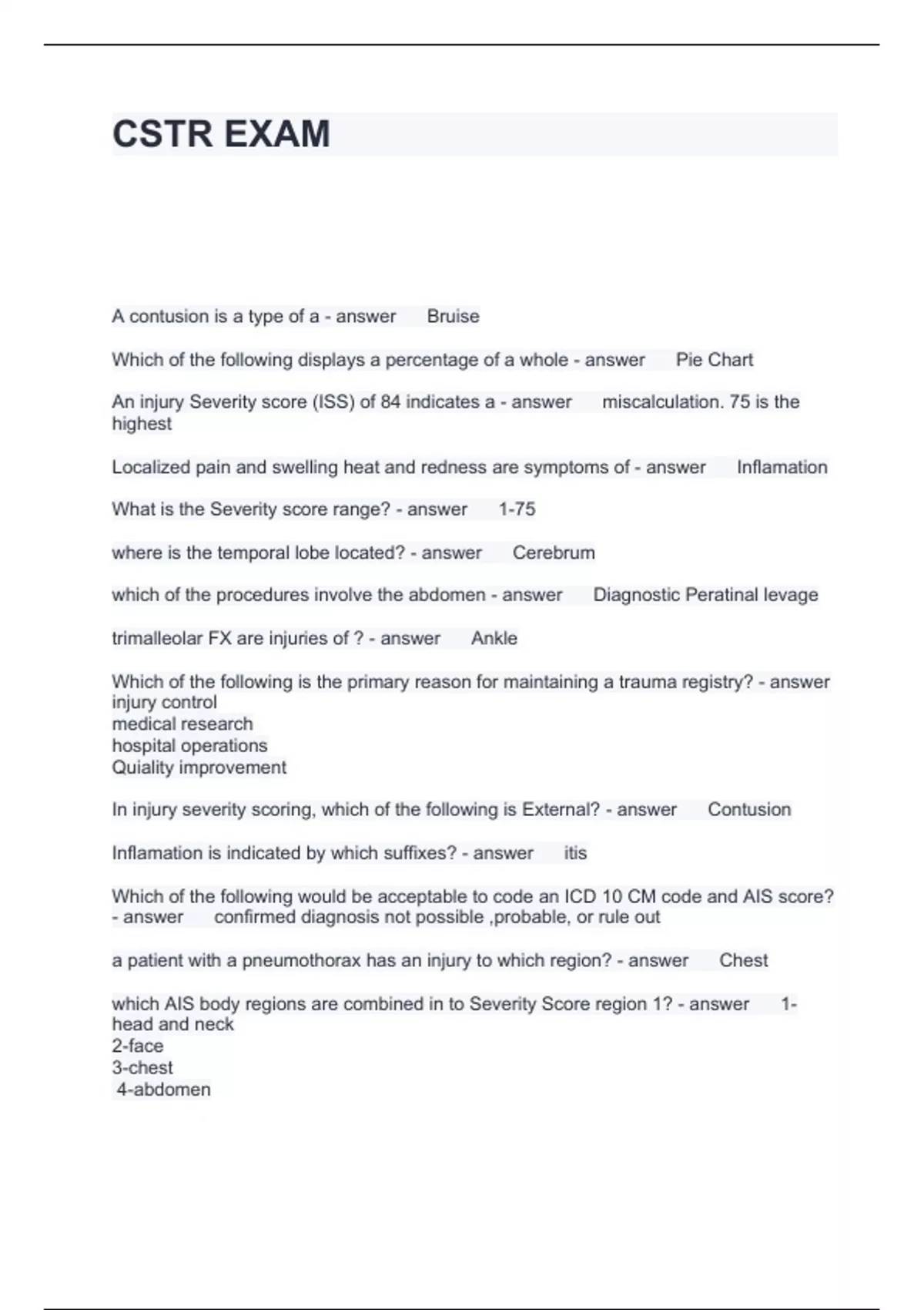 CSTR EXAM BUNDLE GRADED A+ 2024