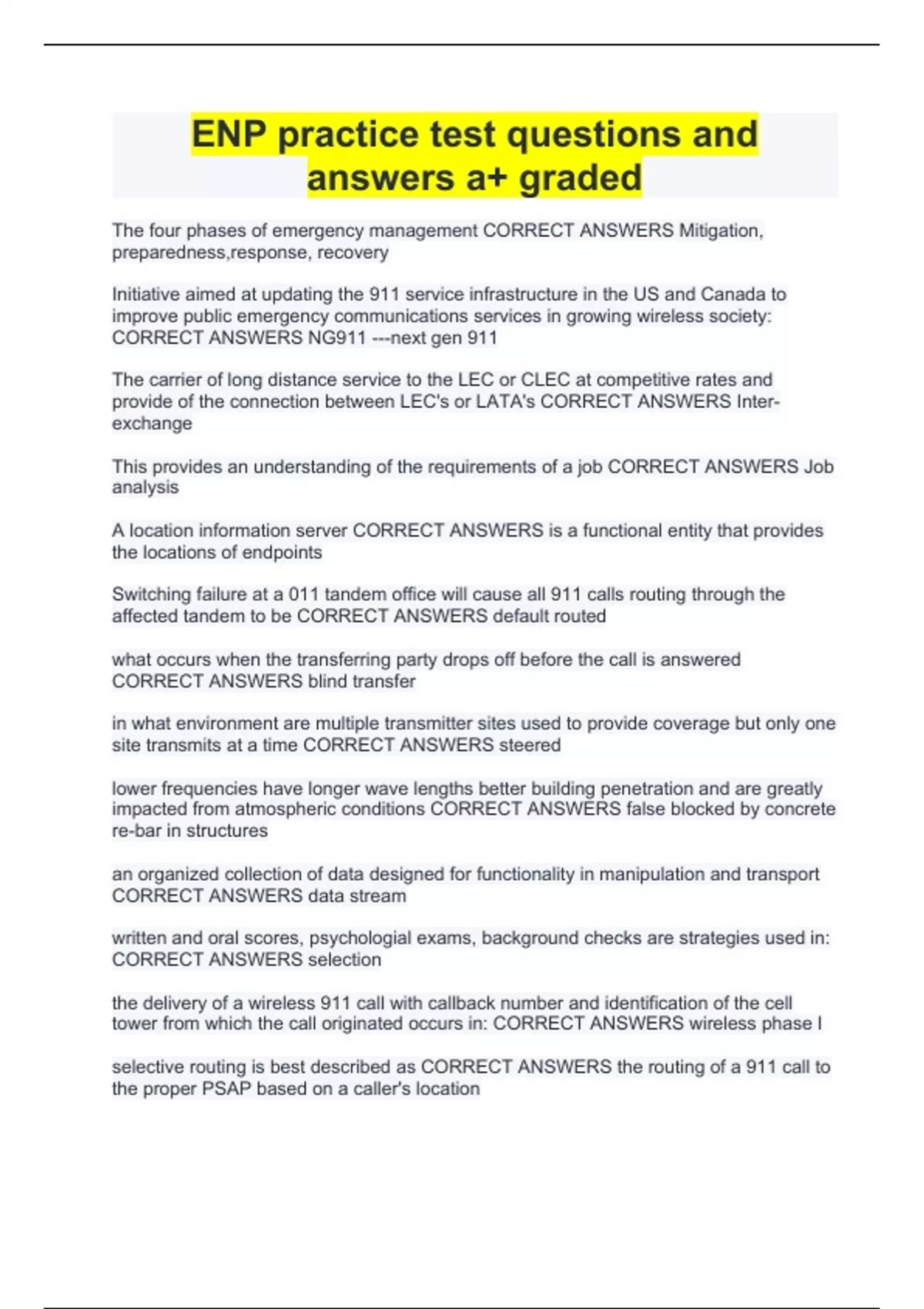 ENP practice test questions and answers a+ graded ENP Study Questions With Complete Solutions | Verified ENP Exam Questions With Complete Solutions Already Passed ENP Exam Questions And Answers | Verified | Guaranteed Success