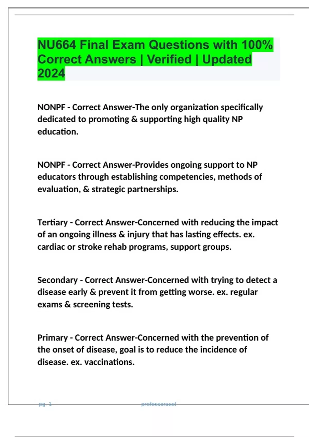 NU664 Final Exam Questions with 100% Correct Answers | Verified | Updated 2024 NU 664 Exam 1 Questions With 100% Correct Answers 2024 NU664 Final Exam Questions With 100% Correct Answers 2024 NU664 EXAM 2 QUESTIONS WITH 100% CORRECT ANSWERS 2024 Nu 664 Midterm Exam With 100% Correct Answers 2024 Nu 664 Final Exam Questions With 100% Correct Answers