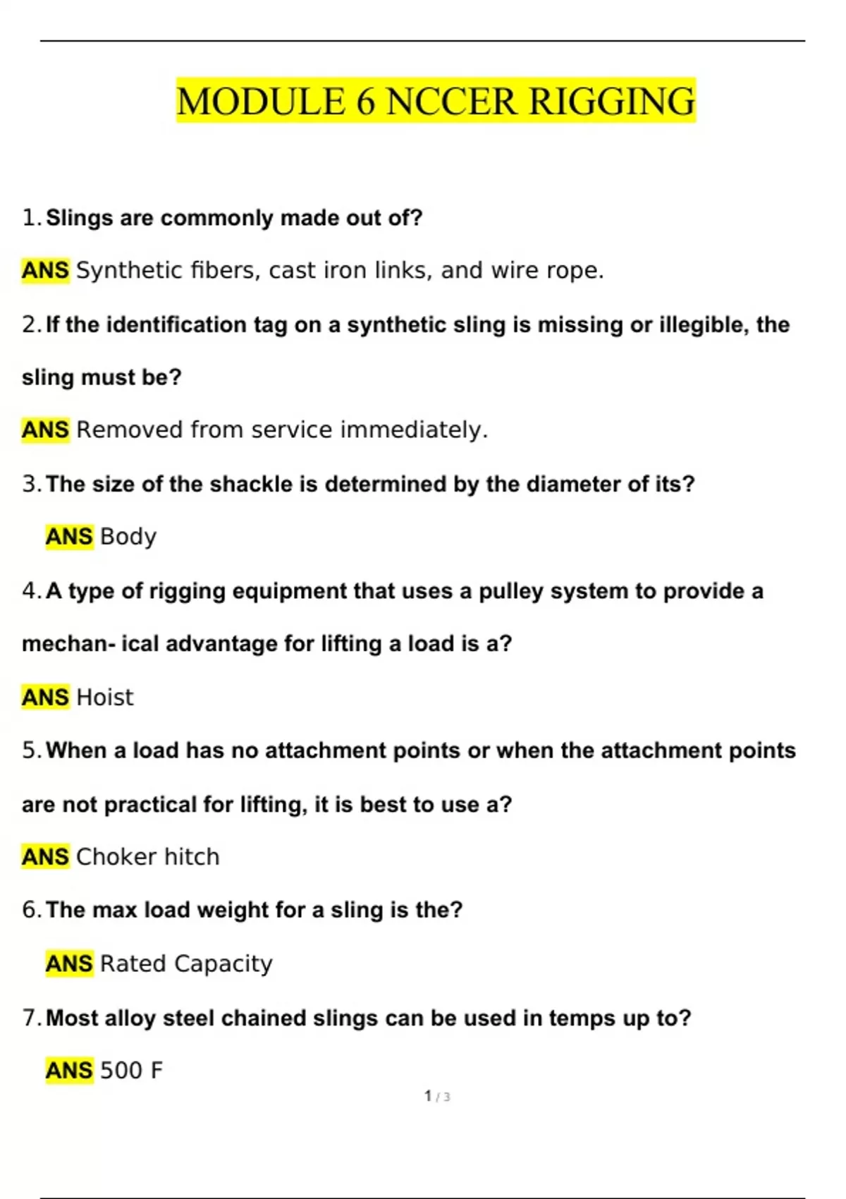Module 6 NCCER Rigging Questions and Answers 100% Pass