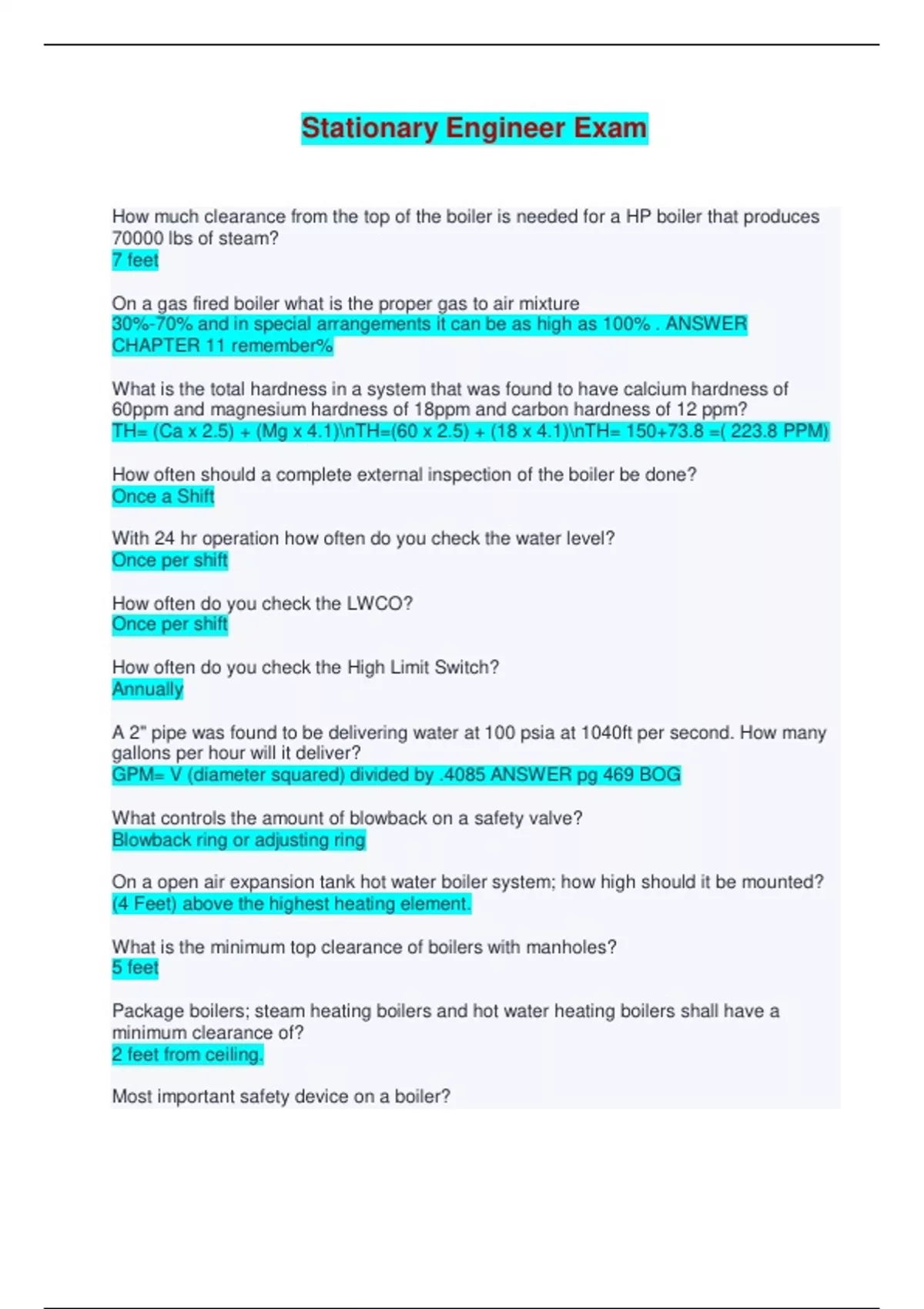 STATIONARY ENGINEER EXAMS PACKAGE
