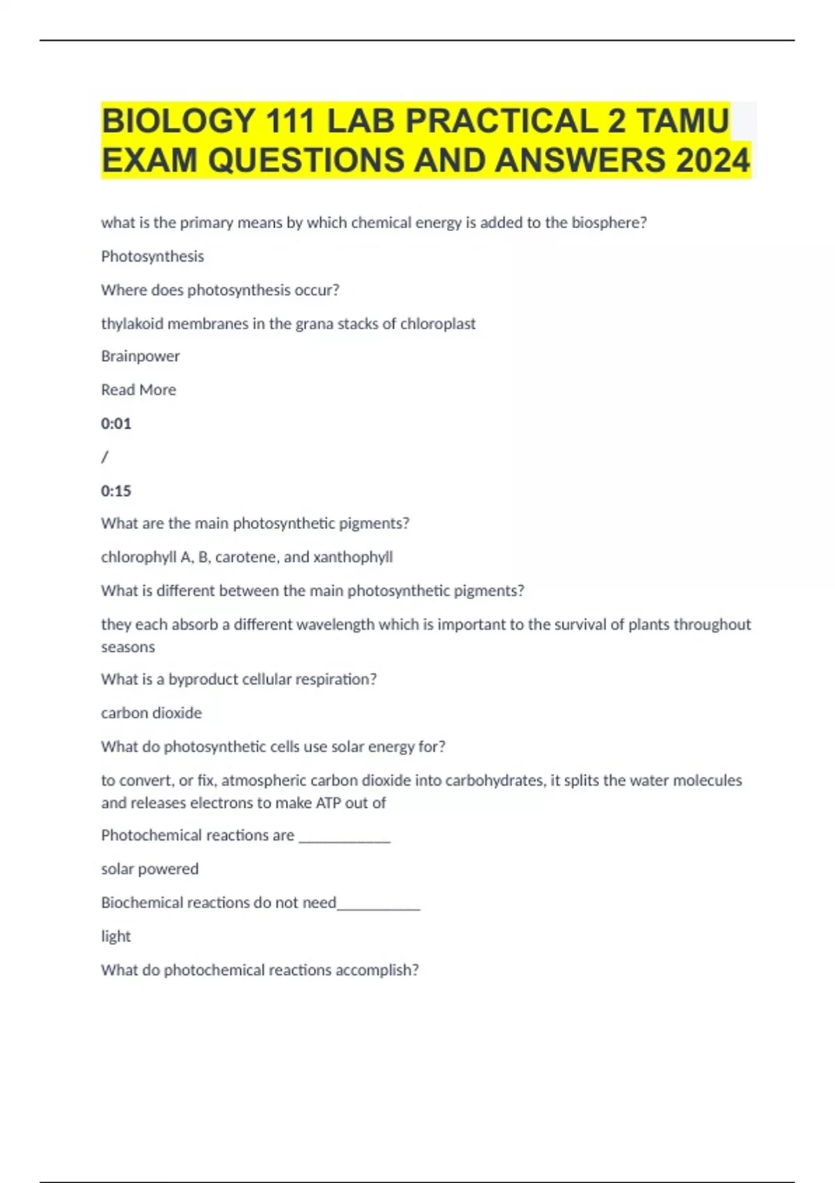 TEXAS A&M BIOLOGY 111 PRACTICAL EXAM PREP EXAM QUESTIONS AND ANSWERS 2024