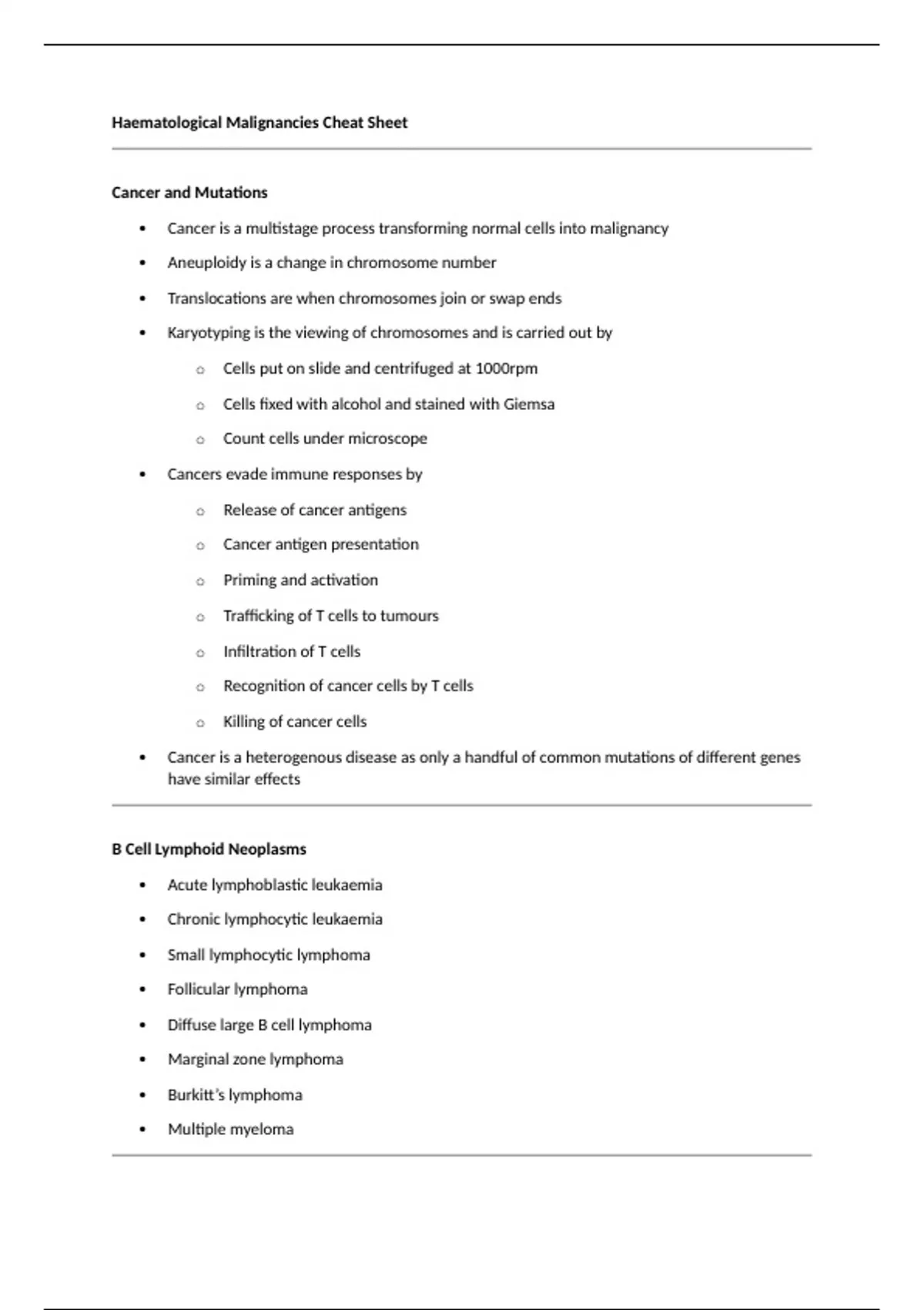 Summary BHCS2005 - Clinical Haematology and Biochemistry - Haematological Malignancies