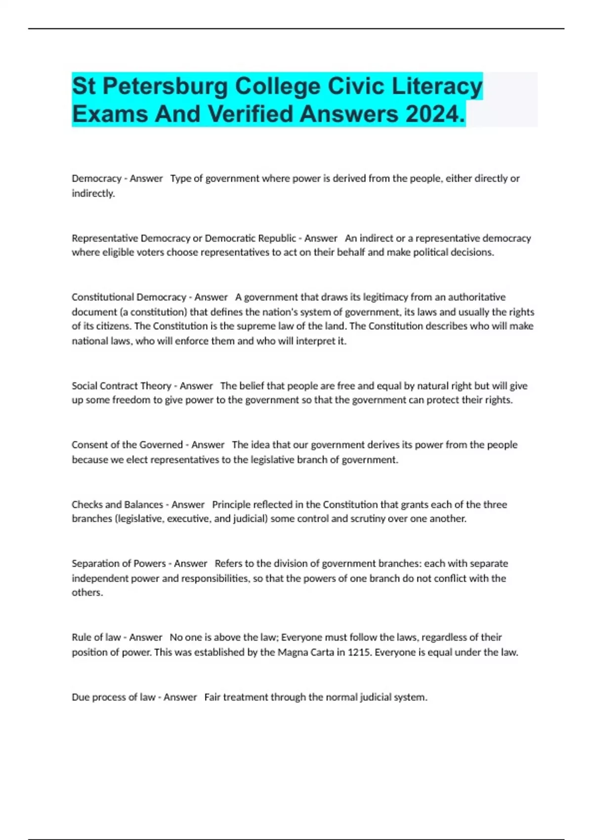1 Exam (elaborations) Civic Literacy Court Cases Pro Exam Well Answered 100% 2024. 2 Exam (elaborations) Civic Literacy Exam Questions And Answers Graded A+ 2024. 3 Exam (elaborations) Civic Literacy Landmark Cases Study Guide Exam Fully Answered 2024. 4 Exam (elaborations) Civic Literacy Review Exam Fully Solved 2024. 5 Exam (elaborations) Civ