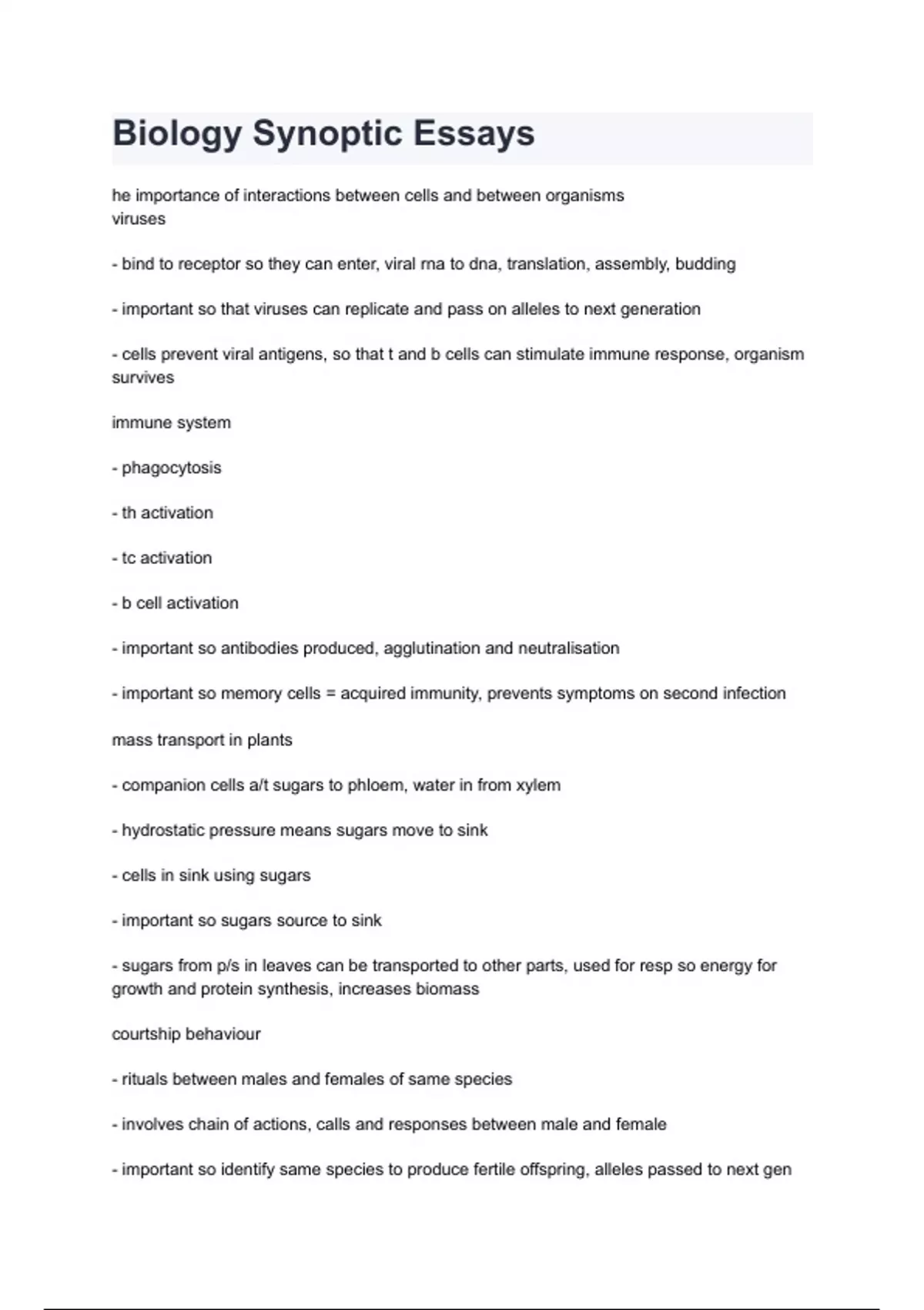 Biology Synoptic Essays All Verified Questions with Complete Solution