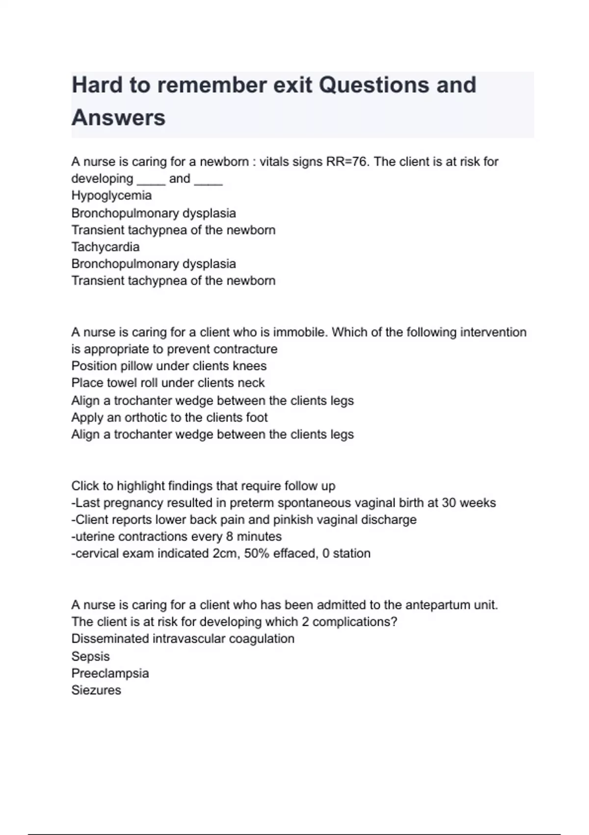 Hard to remember exit Questions and Answers