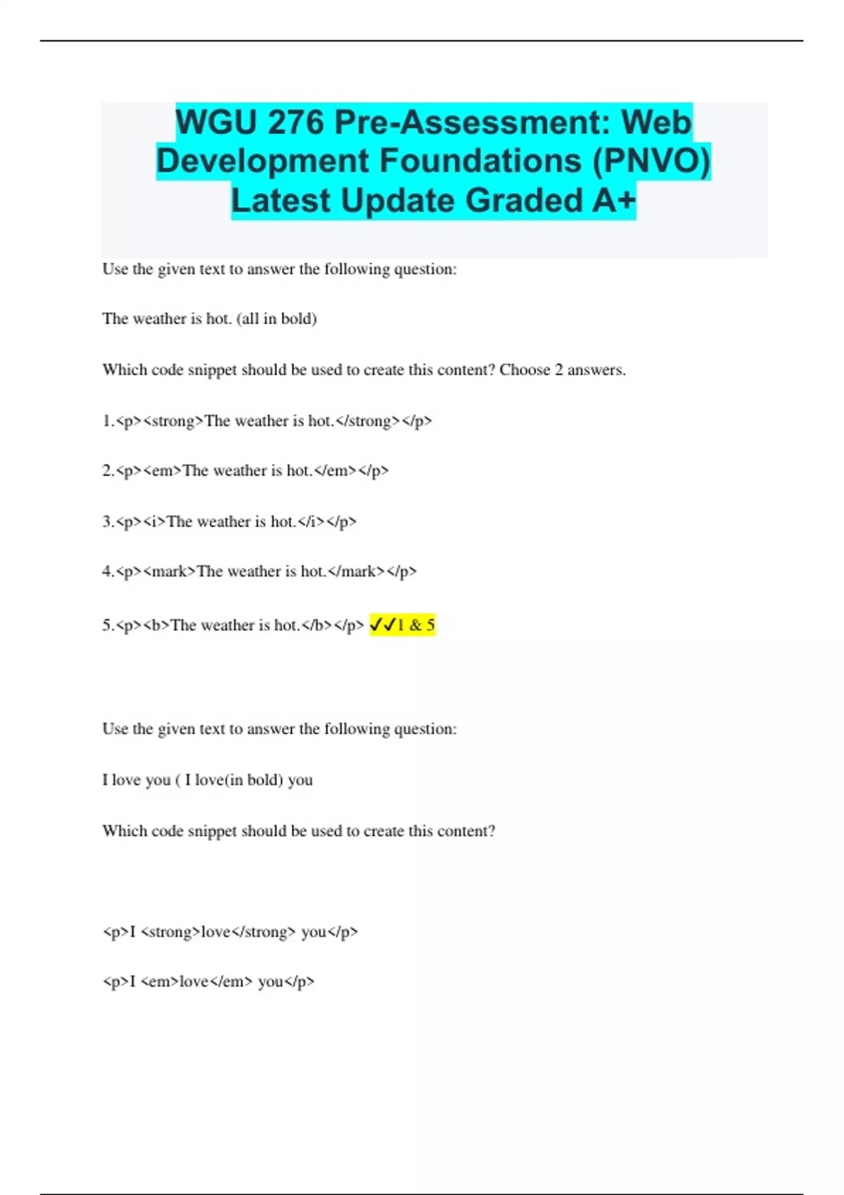 WGU 276 Bundled Exams Questions and Answers Latest Versions (2024/2025) Already Passed