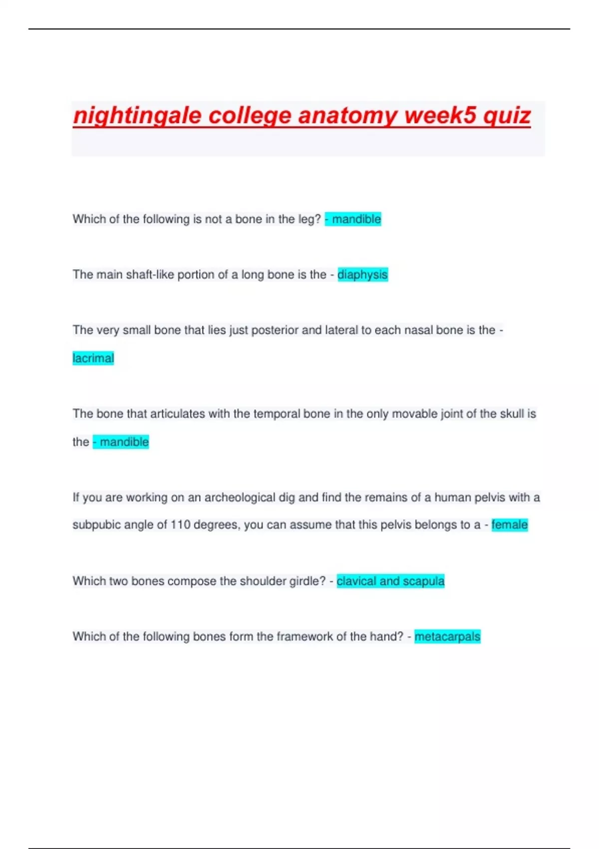 nightingale college test bundle for anatomy Questions With Complete Solutions