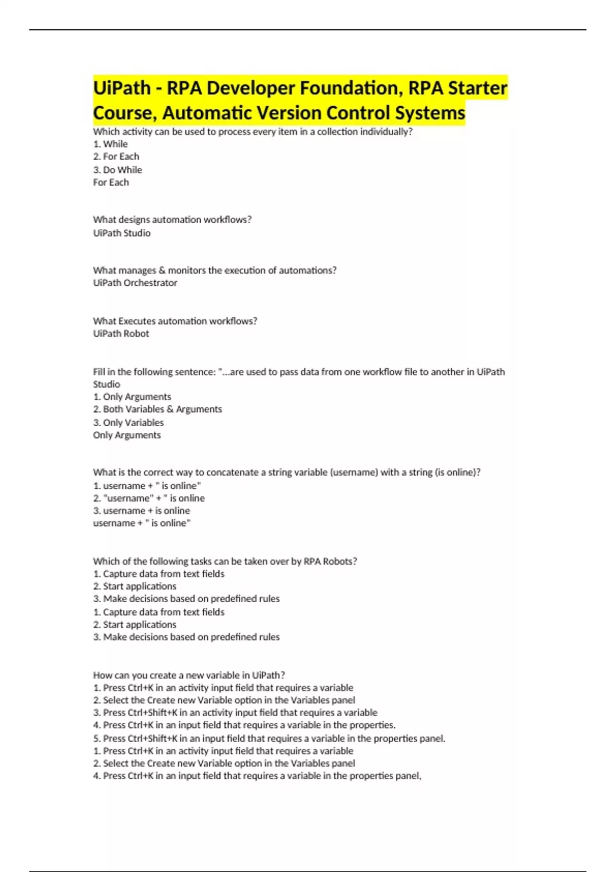 UiPath - RPA Developer Foundation, RPA Starter Course, |A+ Graded 2 Exam (elaborations) Summary UiPath RPA Certification Study Guide Complete with A+ Graded Solutions 3 Exam (elaborations) UiPath Advanced RPA Developer Certification Training Exam Questions and Answers Latest 2024 4 Exam (elaborations) RPA Advanced Developer Certification |Comple
