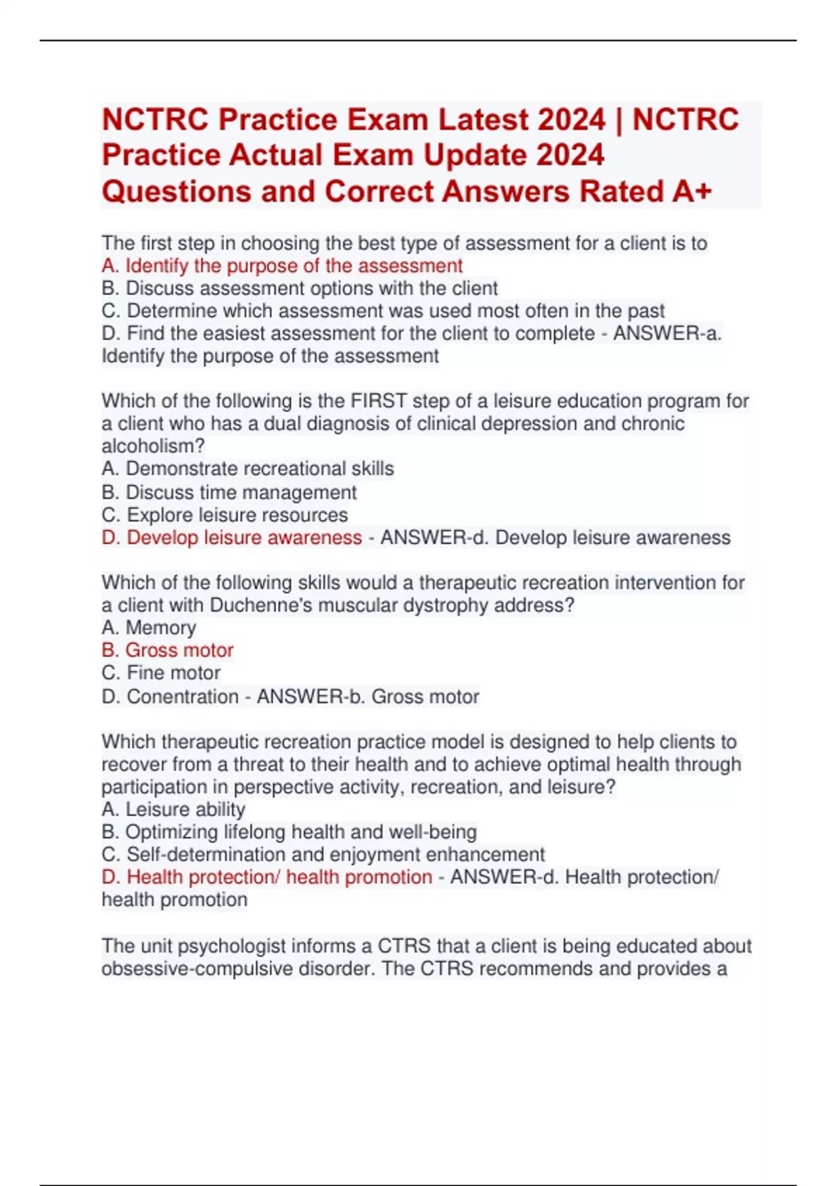 NCTRC Practice Exam Latest 2024 | NCTRC Practice Actual Exam Update 2024 Questions and Correct Answers Rated A+