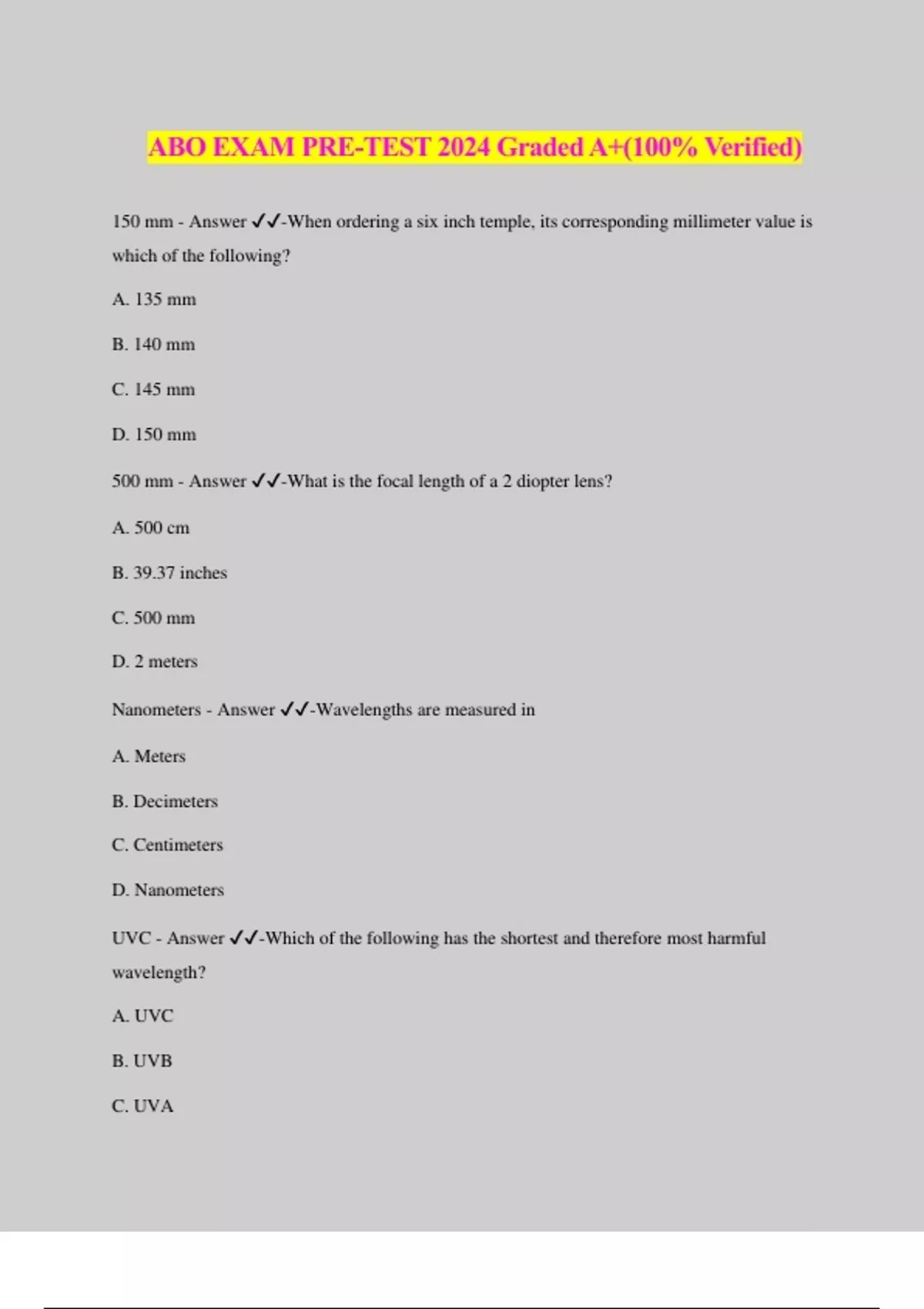 ABO EXAM PRE-TEST 2024 Graded A+(100% Verified)