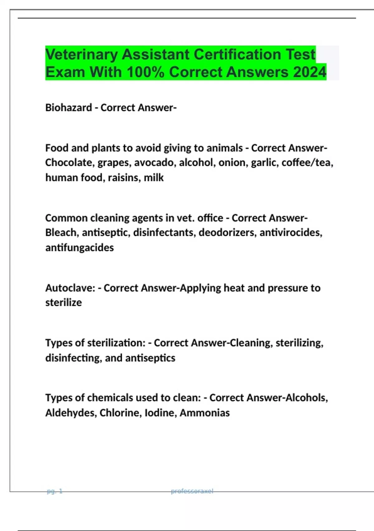 CVA Exam Questions with 100% Correct Answers | Verified | Updated 2024 Veterinary Assistant Certification Test Exam With 100% Correct Answers 2024 Veterinary Assistant Certification Exam Review With 100% Correct Answers 2024 CVA (Certified Veterinary Assistant) TVMA - Level 1 Exam With 100% Correct Answers 2024