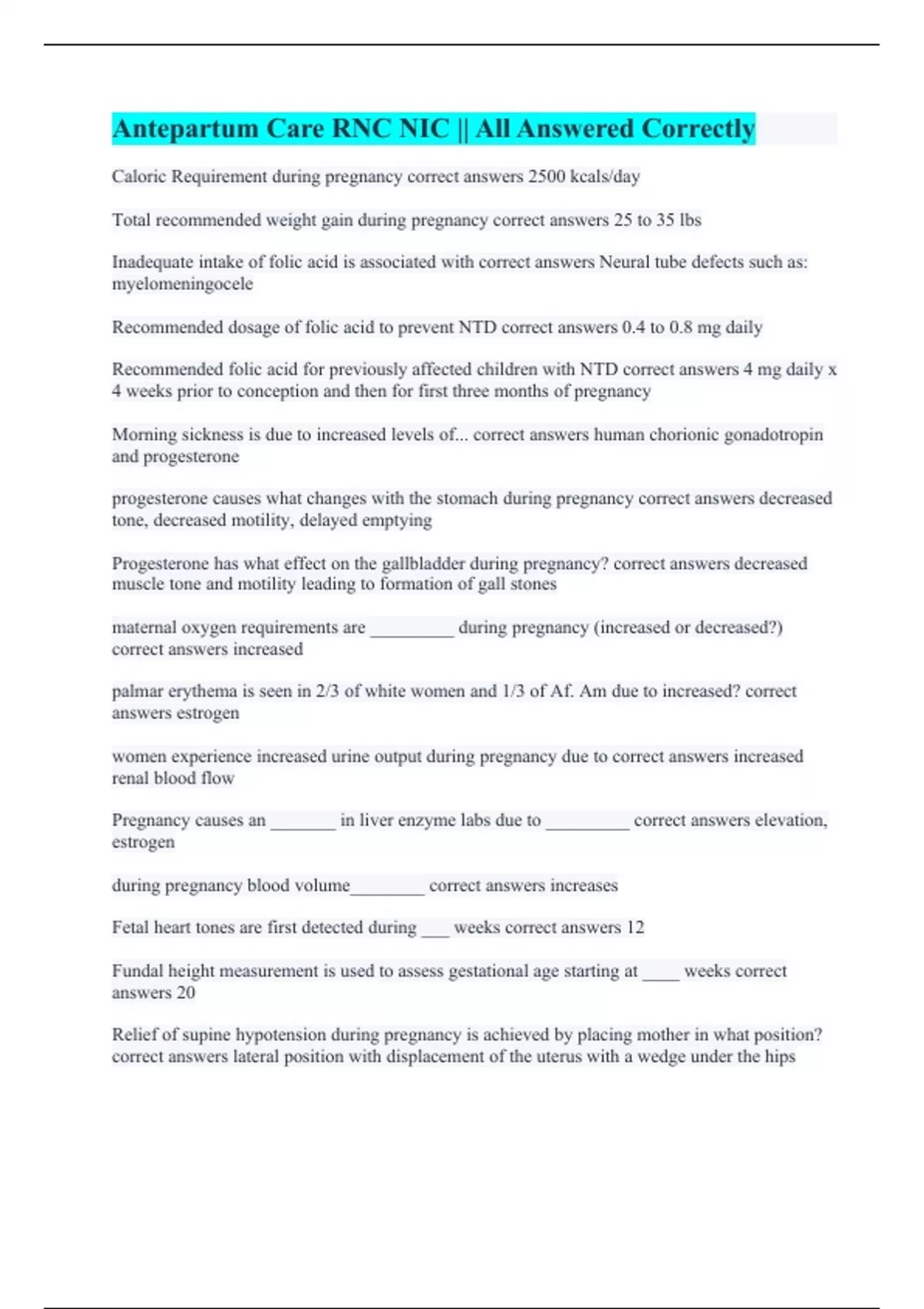 RNC-NIC || with 100% Verified Solutions Antepartum Care RNC NIC || All Answered Correctly RNC NIC || All Answered Correctly OB Drugs, RNC test questions || A+ Guaranteed Solutions. Inpatient OB Certification || with Error-free Solutions RNC OB Part 1: Factors Affecting Fetus and Newborn || with Accurate Answers. RNC OB Part 2: Fetal Assessment || A