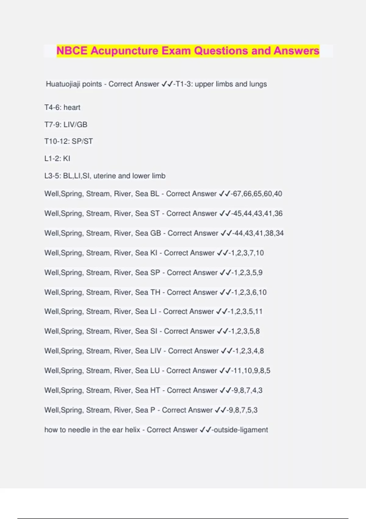 NBCE Acupuncture Bundled Exams Questions and Answers 100% Verified and Updated | Graded A+