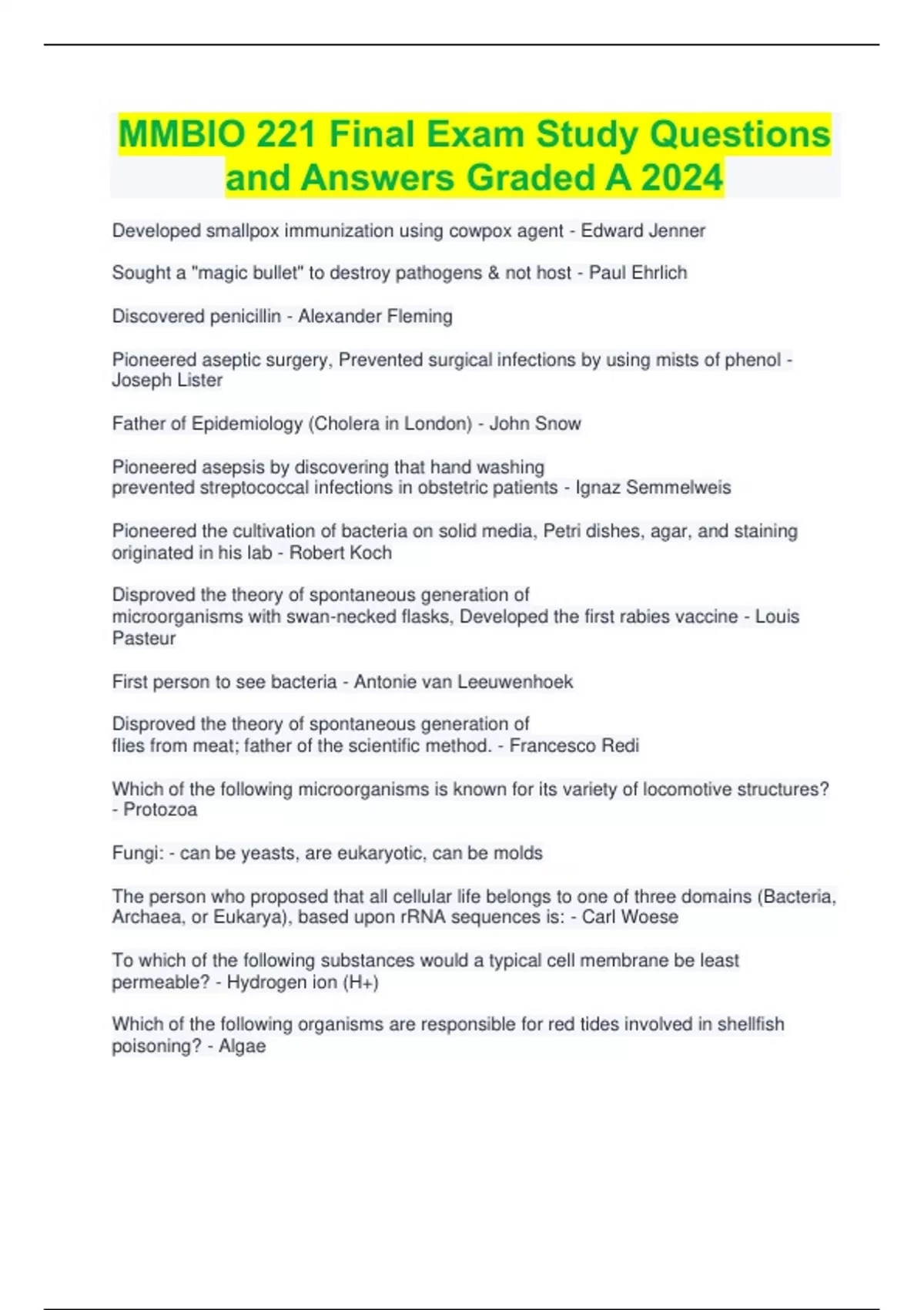 BUNDLED MMBio 221 Exam Guide Questions with Correct Answers Graded A 2024