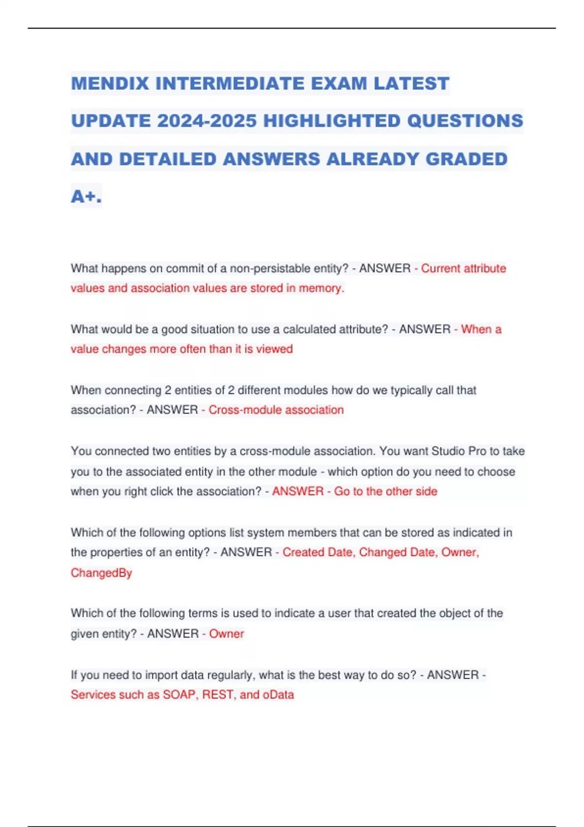 MENDIX INTERMEDIATE EXAM LATEST UPDATE HIGHLIGHTED QUESTIONS AND DETAILED ANSWERS ALREADY GRADED A+.
