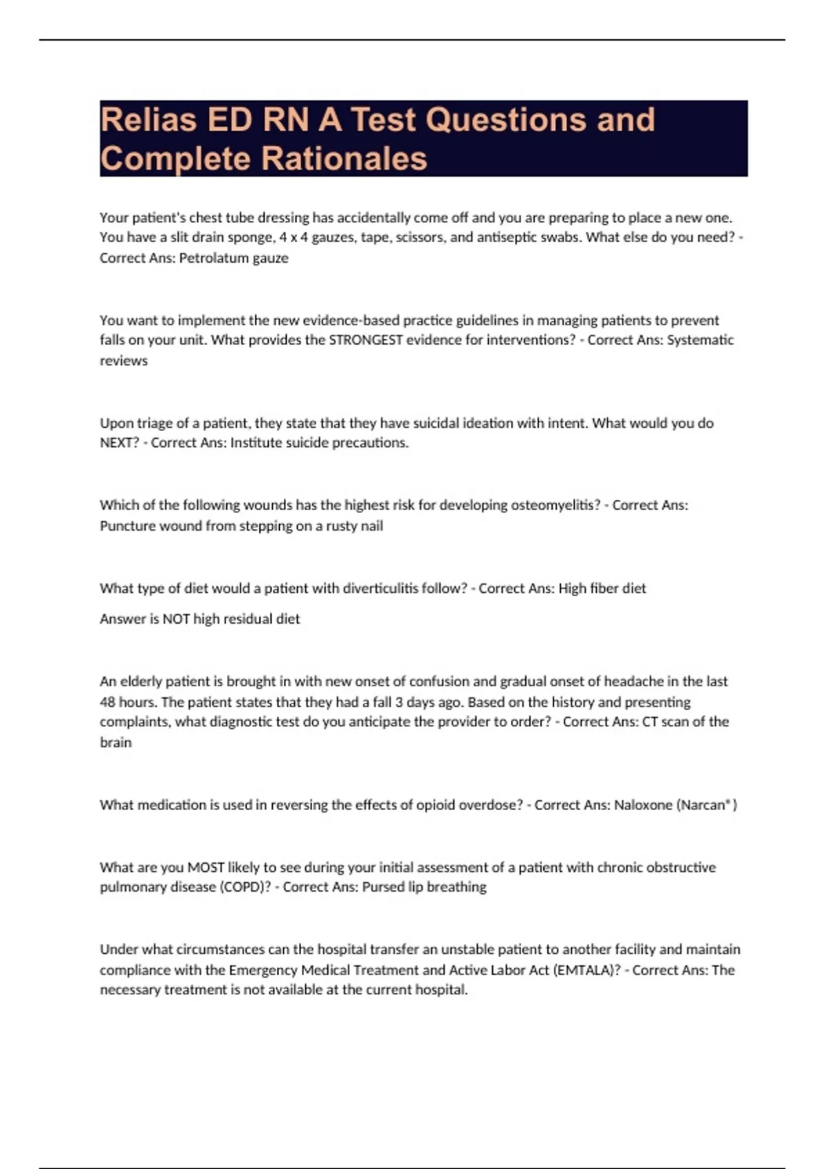 Relias Training Exam Questions with Complete Solutions Bundle Compilation Graded A+