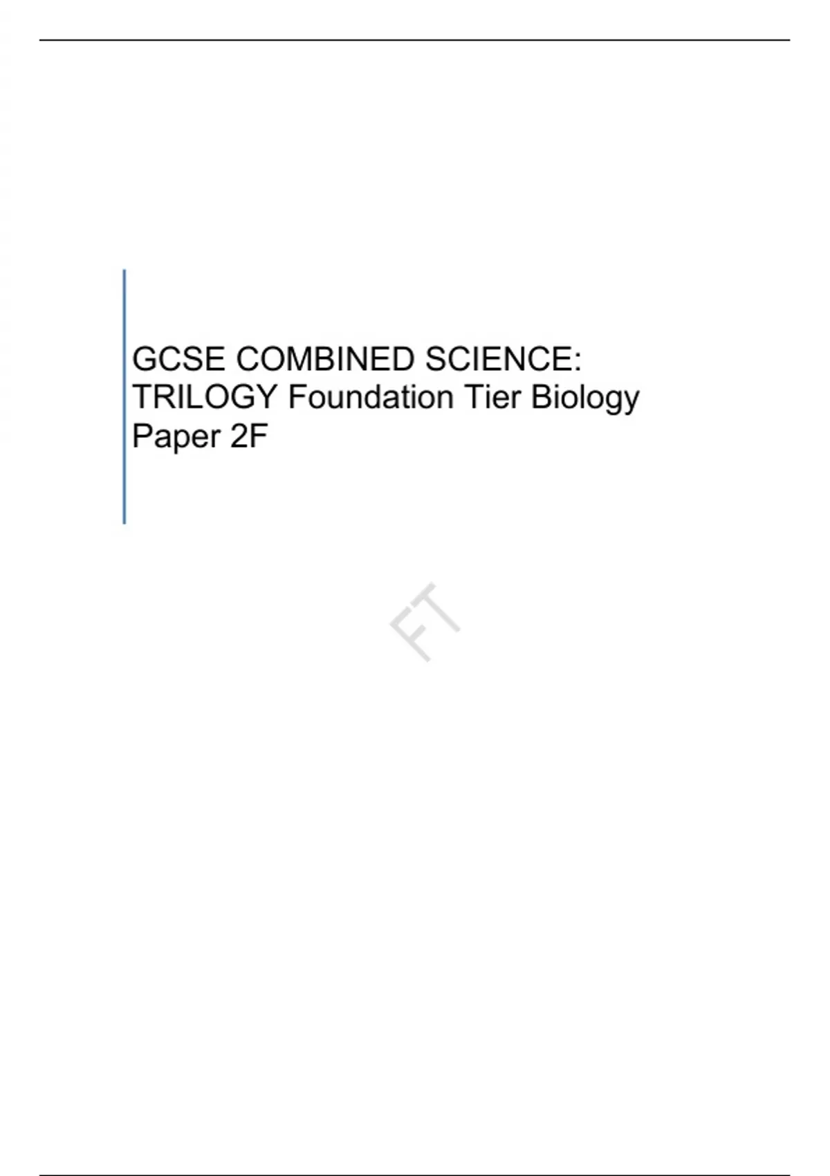 AQA GCSE COMBINED SCIENCE: TRILOGY Biology Paper 2F QUESTION PAPER AND MARK SCHEME FOR JUNE /B/2F
